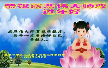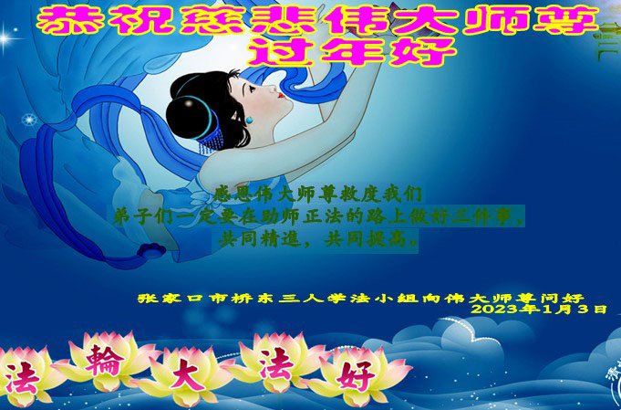 在二零二三中国新年即将到来之际,以各种形式向中国百姓讲真相的大陆大法弟子们,感恩师尊慈悲救度,感恩师尊的保护。大法弟子们谨记师尊的教诲,多救人,一定勇猛精進完成使命。