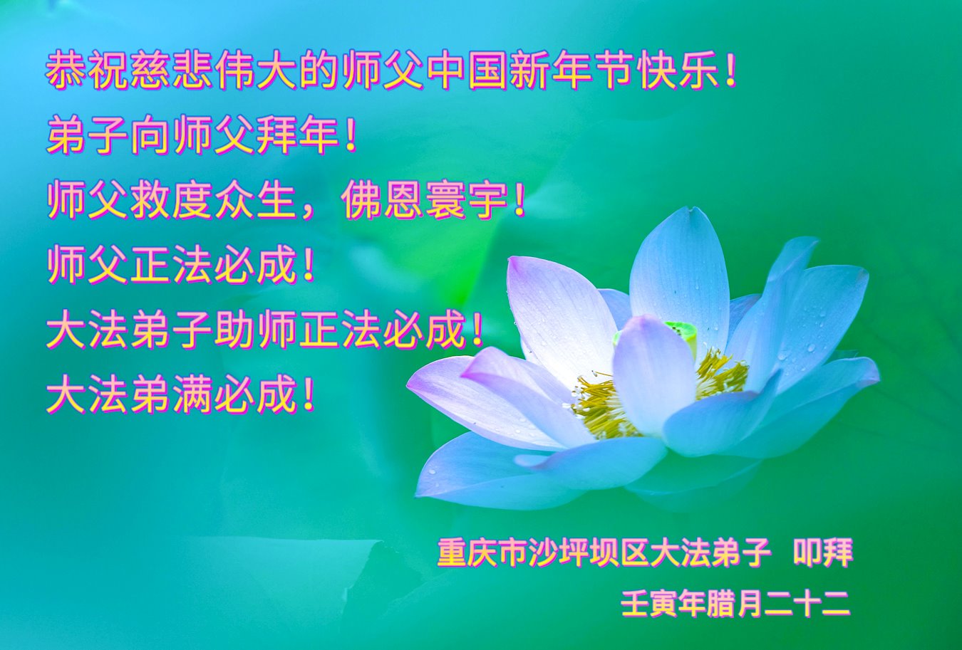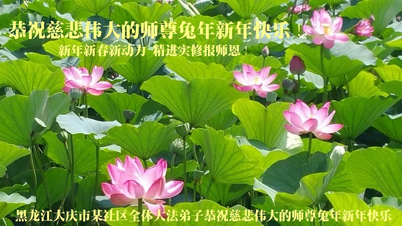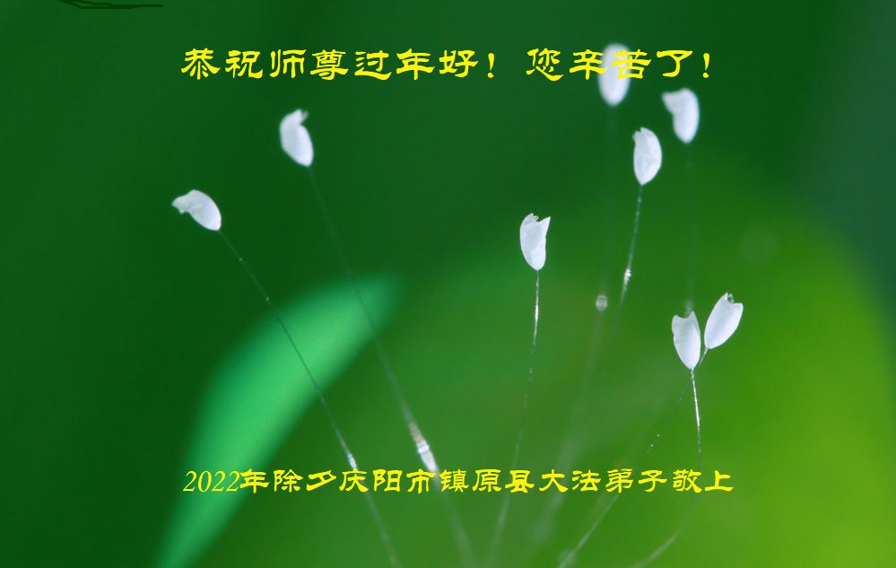 爆竹声声辞旧岁,玉兔盈盈迎新年。新年即将到来之际弟子们感恩师尊慈悲救度,保护弟子们平安走过纷乱不安的二零二二年。感恩师尊为弟子们、为众生的巨大付出与承受。弟子用尽语言也无法表达对师尊浩荡洪恩的感激!唯有精進、听师尊的话、做好三件事,踏踏实实的修炼,坚修法轮大法到底,完成自己的神圣使命,圆满随师还!
