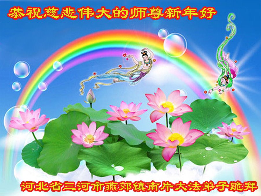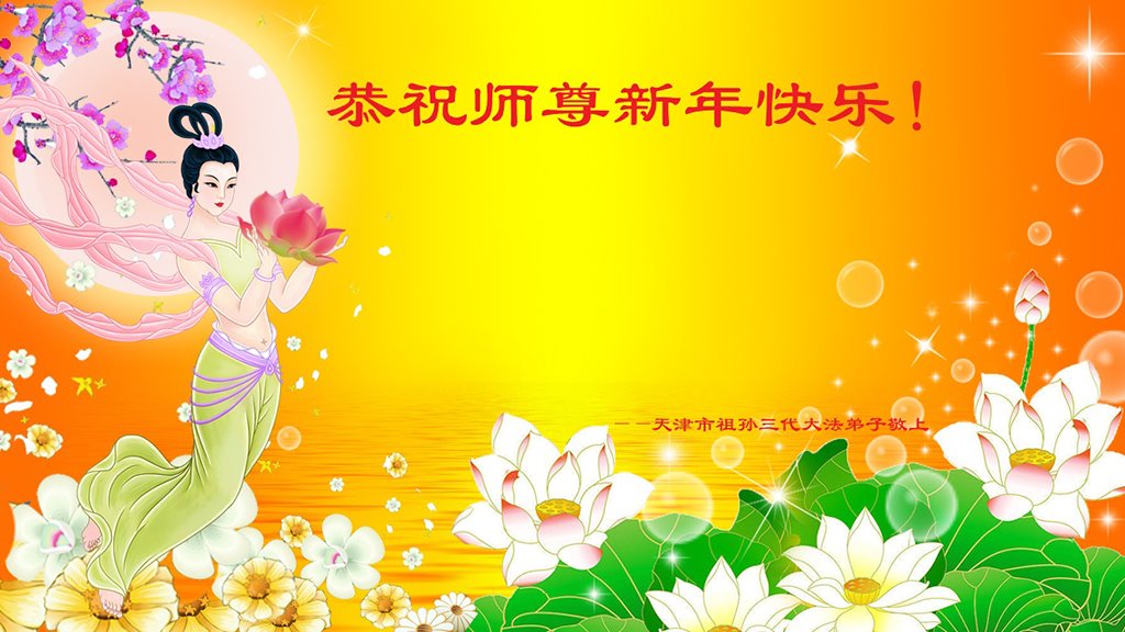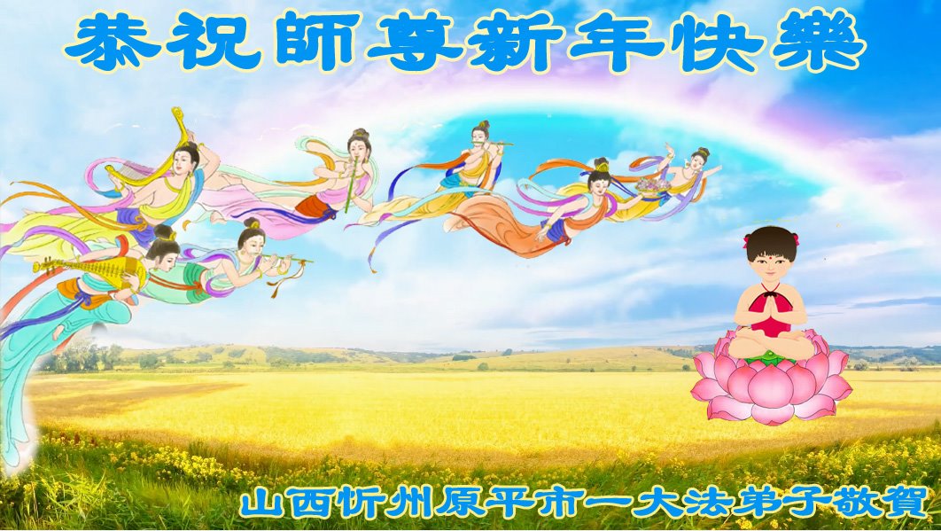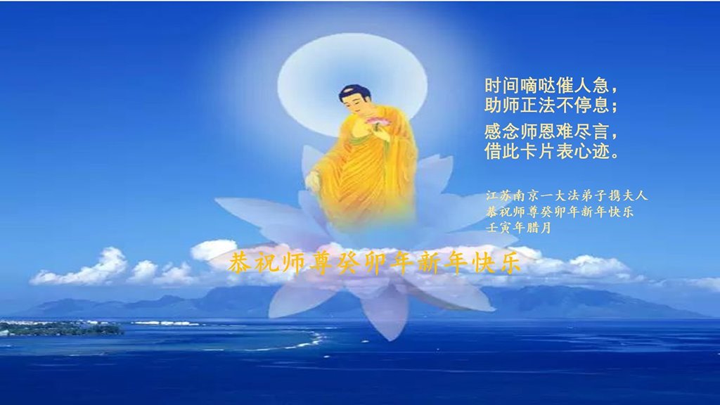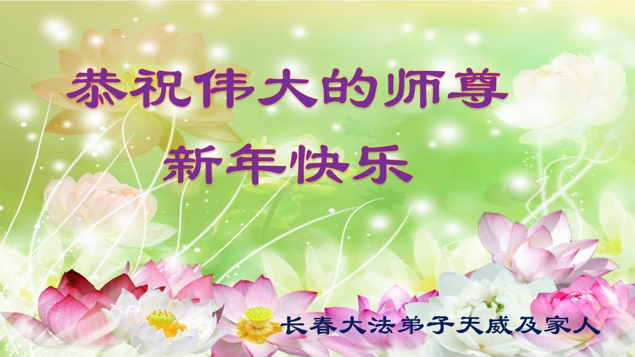 新的一年来临之际,弟子诚祝慈悲伟大的师尊新年快乐!感恩师尊为众生所做的一切,感恩师尊对弟子及弟子家人的慈悲看护,弟子在新的一年会一如既往的做好自己本职工作,配合好一线辛苦讲真相的同修,修好自己,多多的救人,谢谢师尊,师尊辛苦啦!