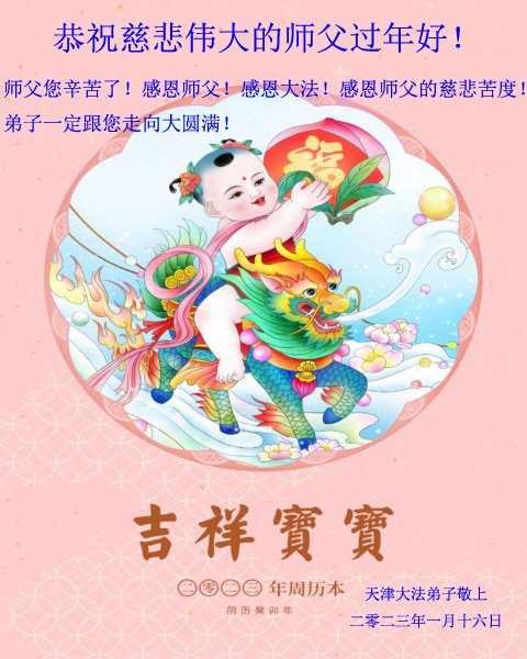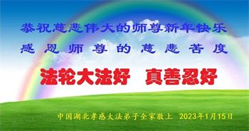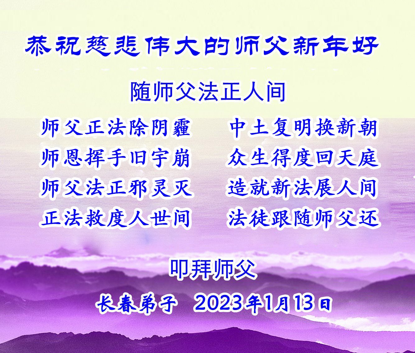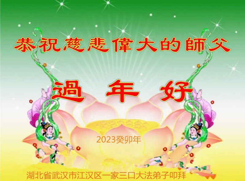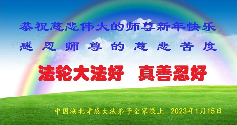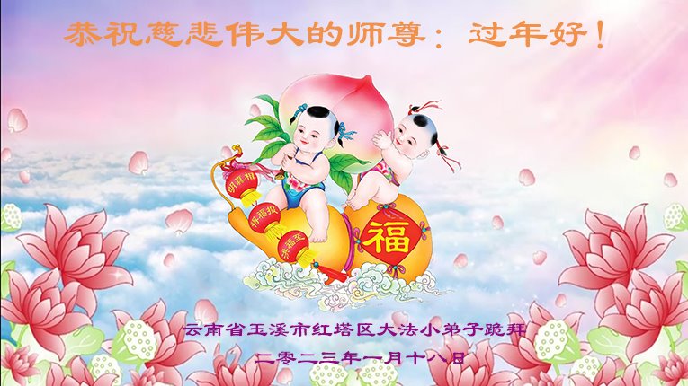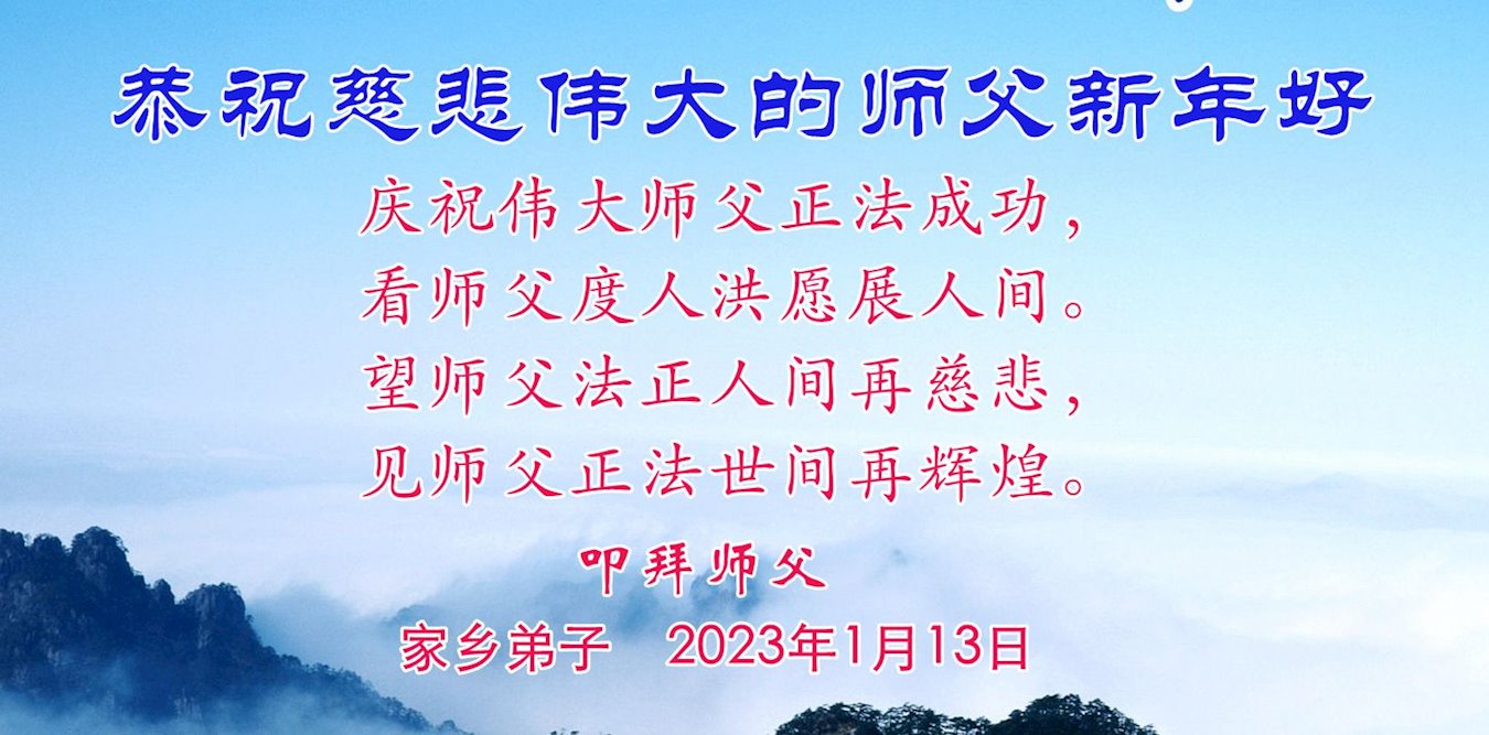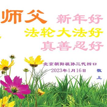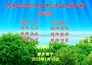 【明慧网二零二三年一月二十一日】2023年中国新年到来之际,中国大陆各民族大法弟子们恭祝李洪志师父新年好!更盼望师父早日回国和弟子们团聚。大法弟子在贺词中写道:“我们时时沐浴在佛恩浩荡中,因为有大法导航,我们不再迷茫;因为有大法指点迷津,我们充满智慧和理性;因为有大法护佑,我们幸福无比。我们时时盼着您早日回中原。”