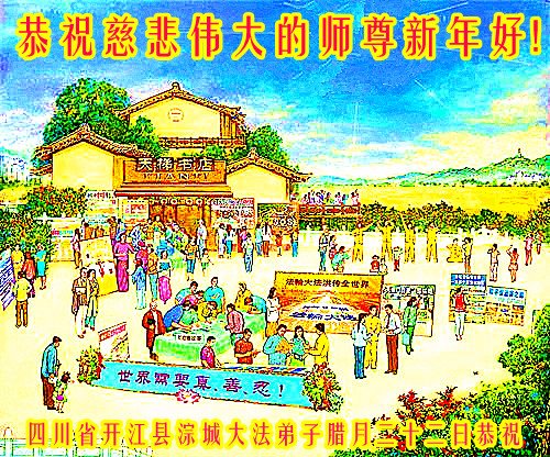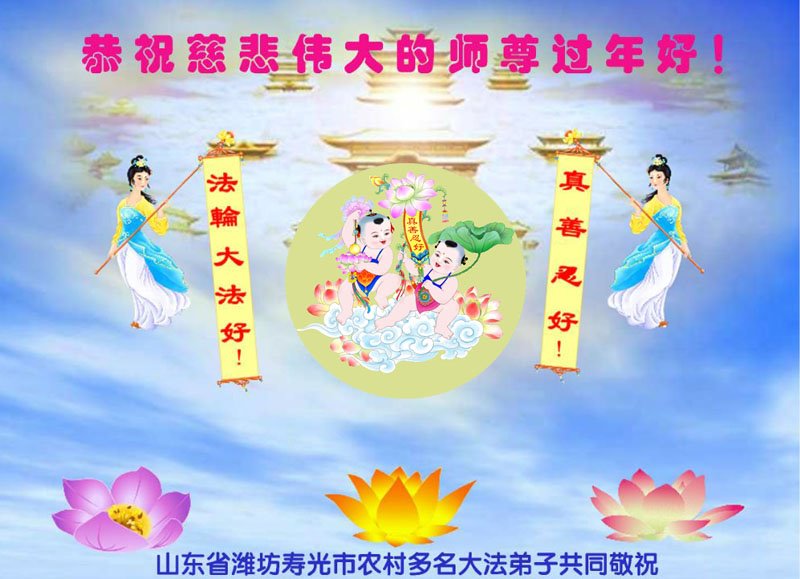 在中国传统大年到来之际,淳朴的乡村大法弟子们传来贺词,敬拜师尊过年好!