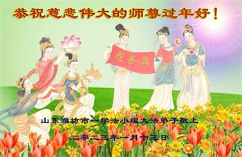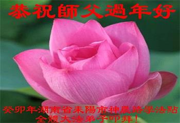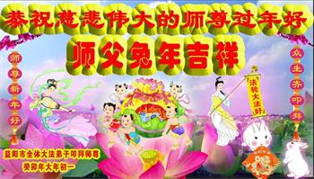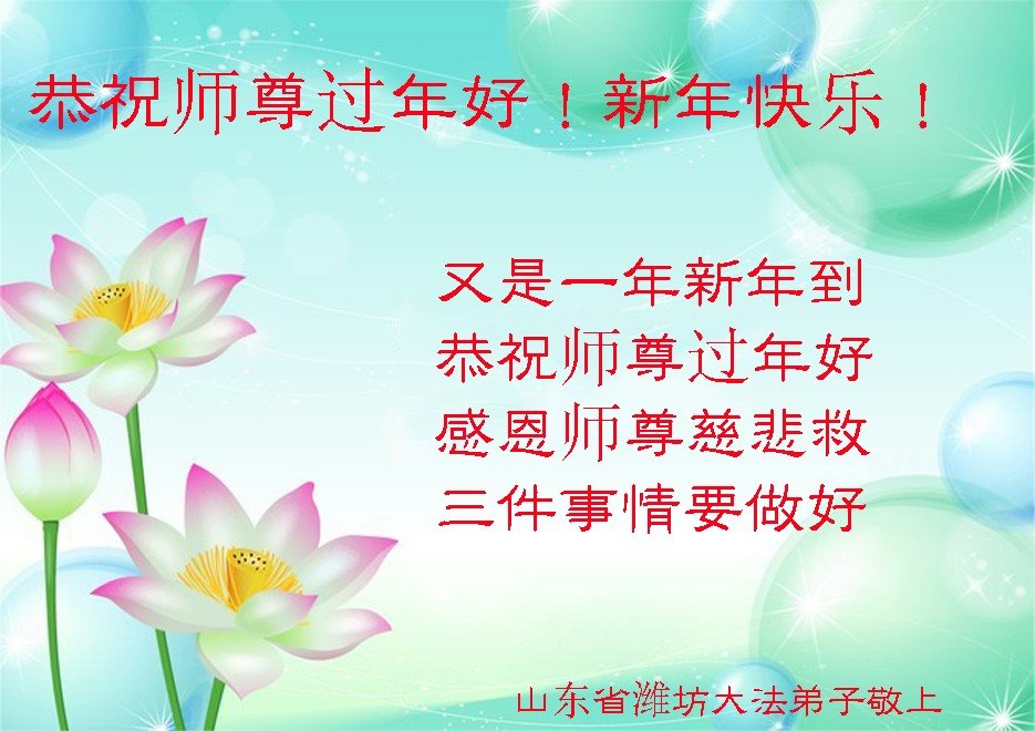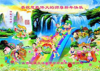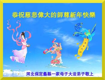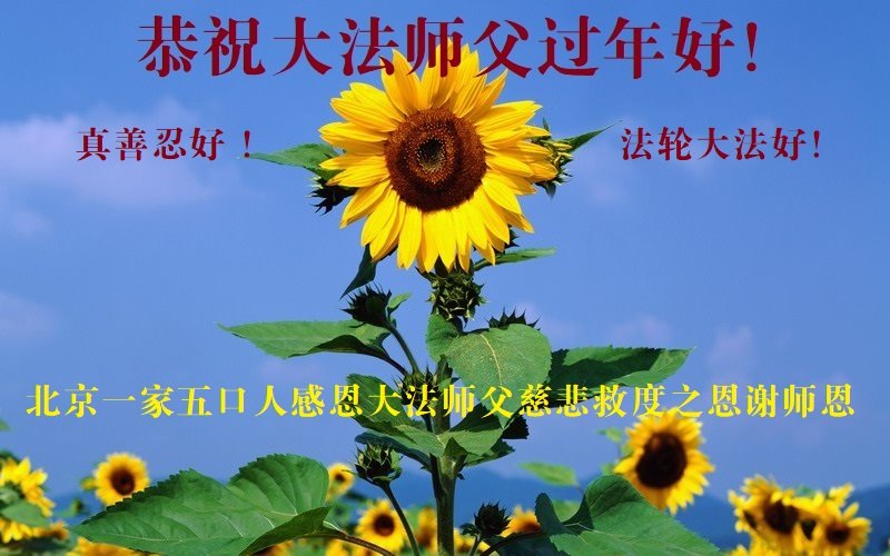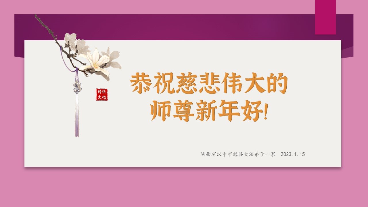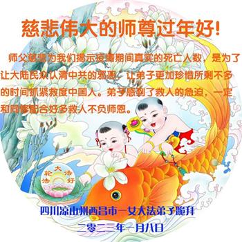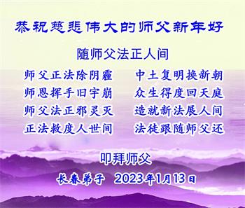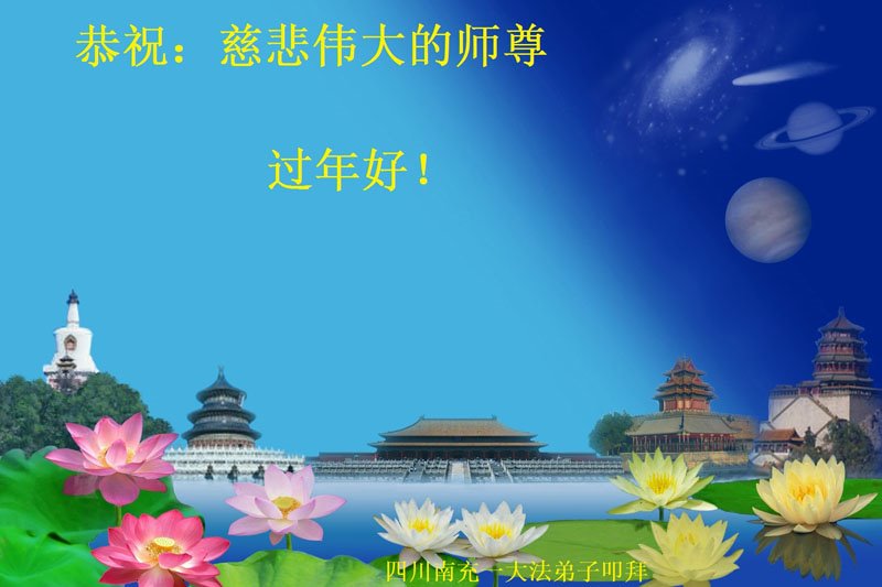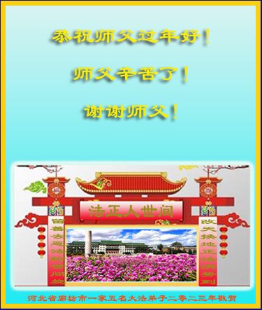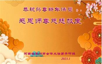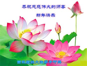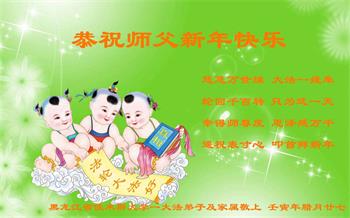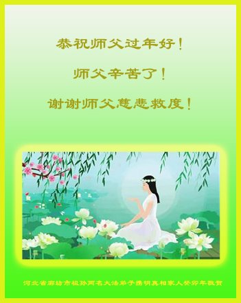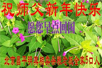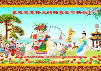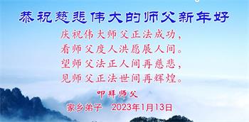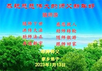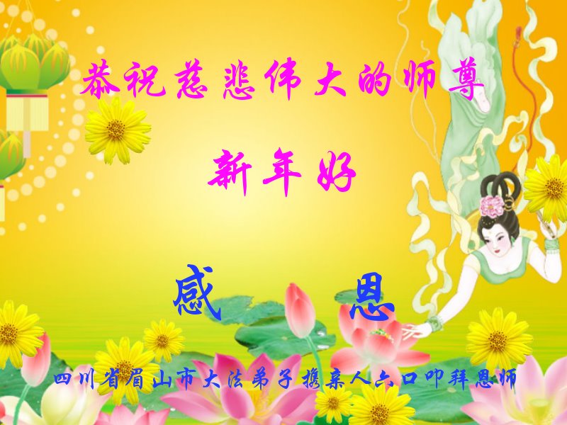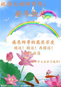 新年来临之际,弟子更加想念师尊,恭祝师尊新年快乐!同时也代表全家人以及明白真相的世人恭祝师尊新年快乐!