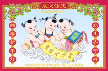 山东省蒙阴县相邻的两个乡村的大法弟子们表示:我们两个村的大法弟子以法为师,比学比修,相互促進,共同提高,用心做好三件事,多救人,兑现誓约。恭祝师父新年快乐!