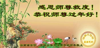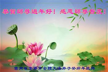 以下是部份来自中国各省、自治区的回族、蒙古族、满族、锡伯族、维吾尔族、朝鲜族、壮族、布依族、苗族、彝族等各民族大法弟子敬致师尊的新年贺信。