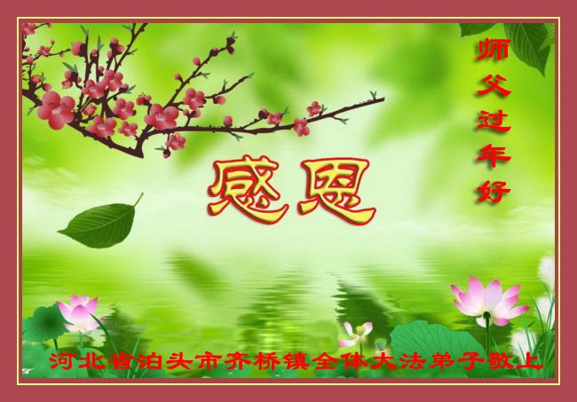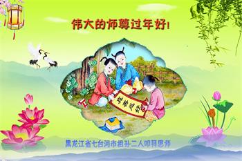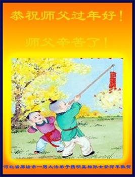 由于被邪*党-冤判九年徒刑,身陷囹圄,我不能亲自给师父拜年,只能转达一份心意:祝恩师新年快乐!