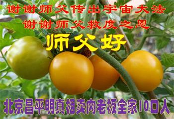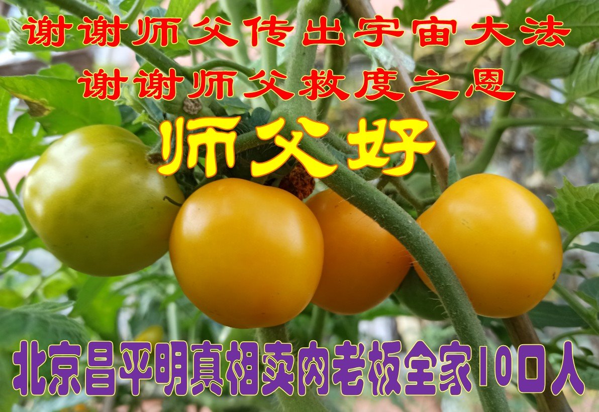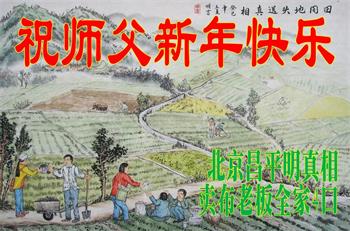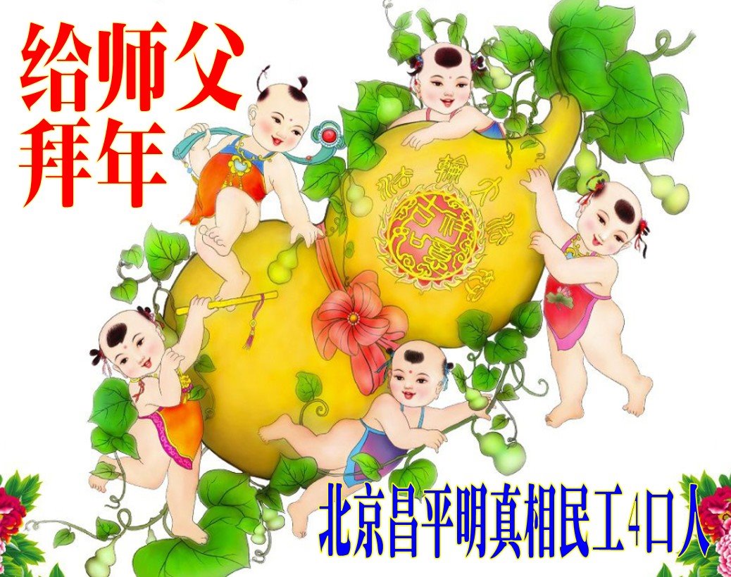 北京昌平一农村大法弟子全家三口给师尊拜年!