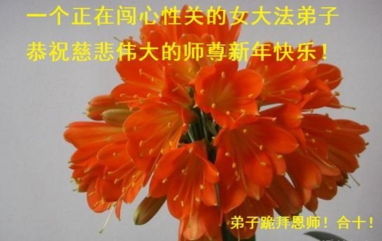 师父您好!新年到,祝师父新年快乐!我感恩师父的一路慈悲保护,请师父放心,修炼这条路再艰辛,我都会紧随师父,珍惜每一天的时间,做好三件事,走正修炼路,做一个合格的正法时期的大法弟子,圆满随师还!