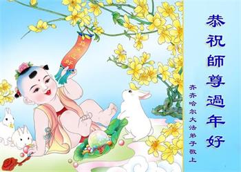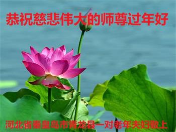 新年到来之际,我们夫妻俩老年大法弟子恭祝师父新年快乐!师父啊!弟子们想念您!助师救人是弟子们的使命不敢忘,待红魔除尽,解体恶党,法正人间迎师回中原!春回大陆师徒大团圆!