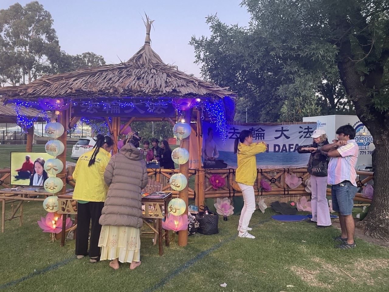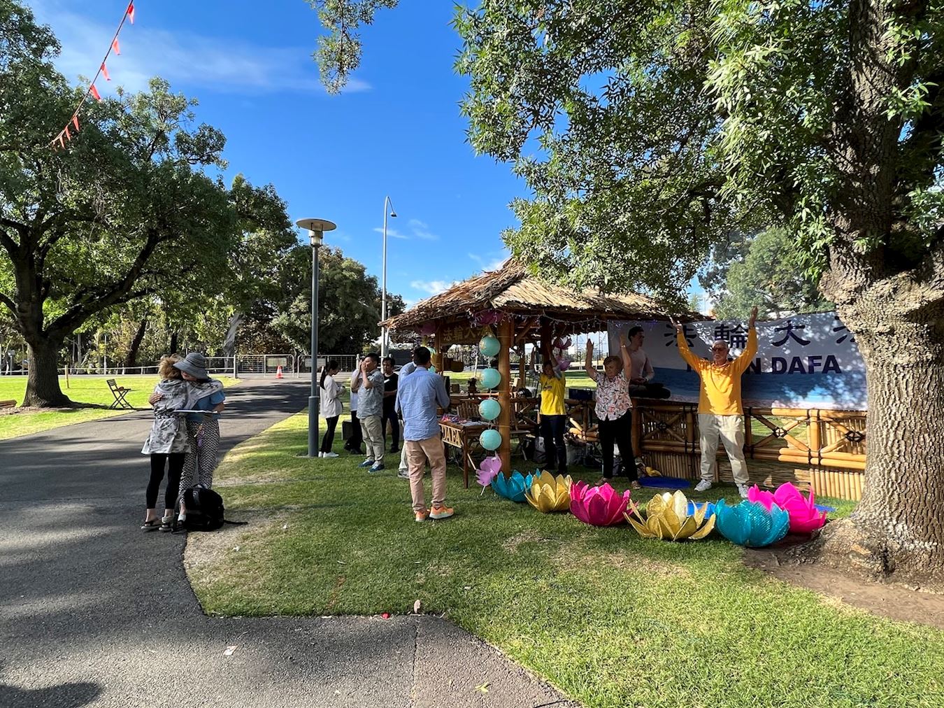 一个月之前的二零二二年十二月中旬,在越南侨界主办的首届亚洲美食节上,法轮功学员设计的展位格外引人注目,既符合主办方要求的要有峇里岛草屋的风情和惠安灯笼的风格,又传递大法美好的信息。典雅清新,在众多的摊位中独树一帜,吸引大批游园客。学员们表演的唐装舞蹈也受到主办单位和观众的好评。