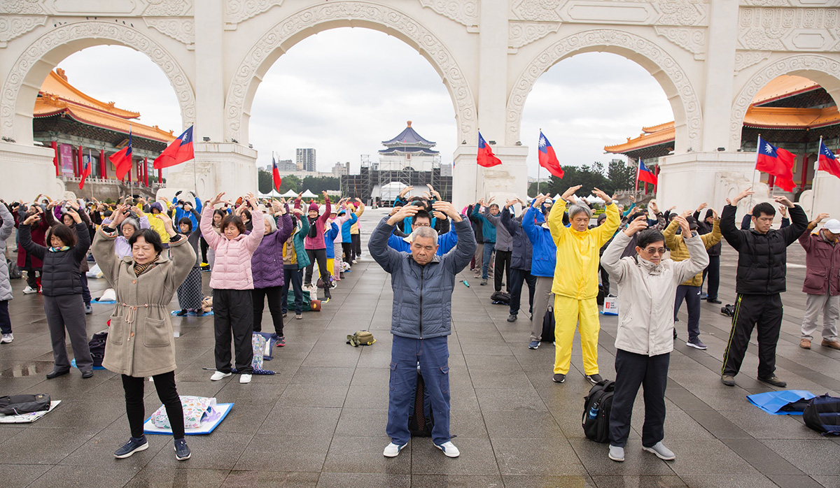 ![]() 图2~3:台北部分学员2023年元旦自由广场炼动功(摄影/许基东) |