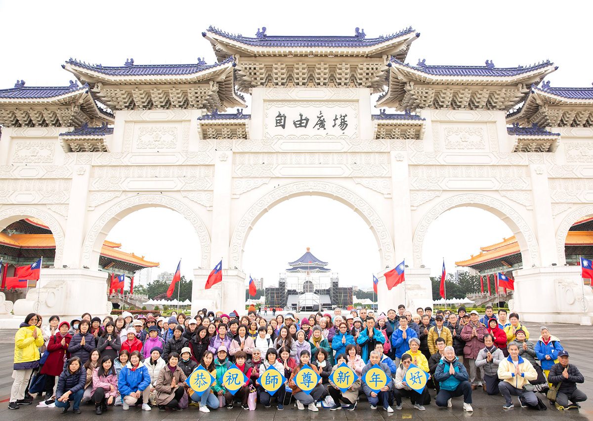 ![]() 图4:台北部分学员2023年元旦自由广场恭祝师父新年好 |