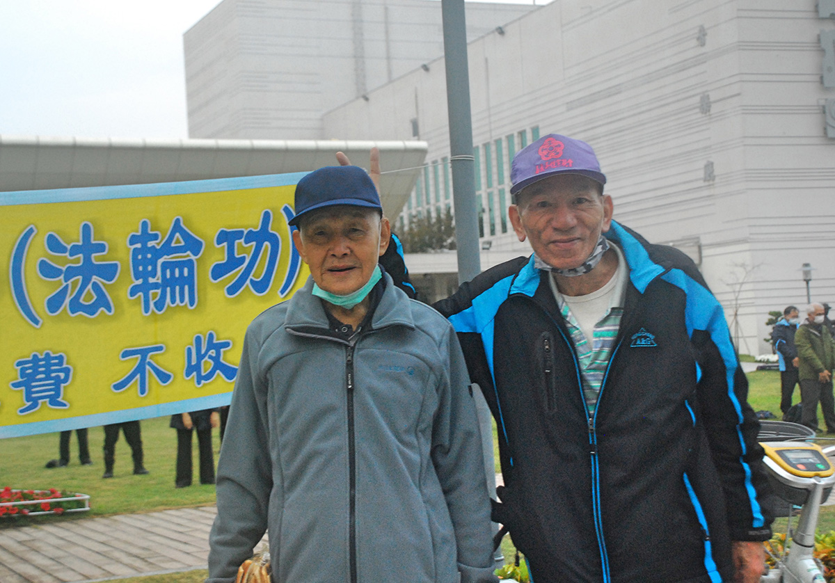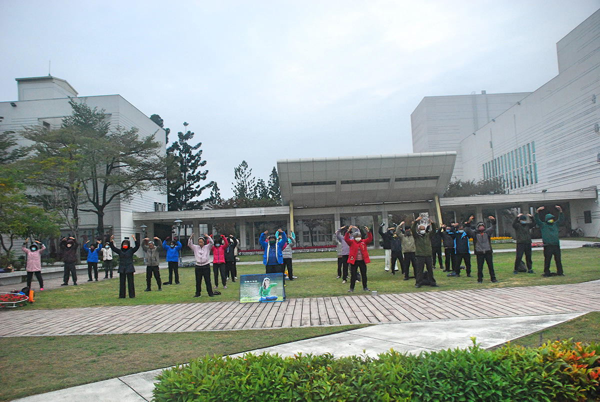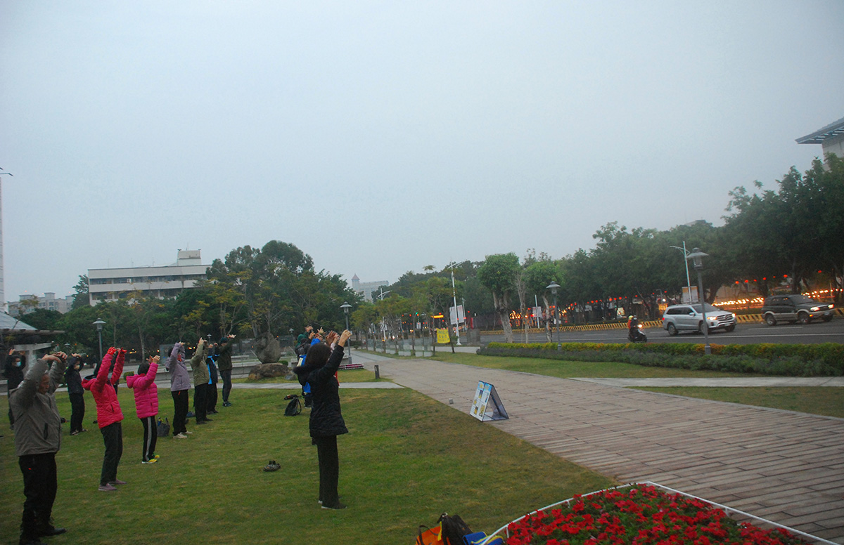 ![]() 图1~2:二零二三年元旦清晨,嘉义部分法轮功学员,在市文化中心广场集体炼功,传播大法的美好。 |