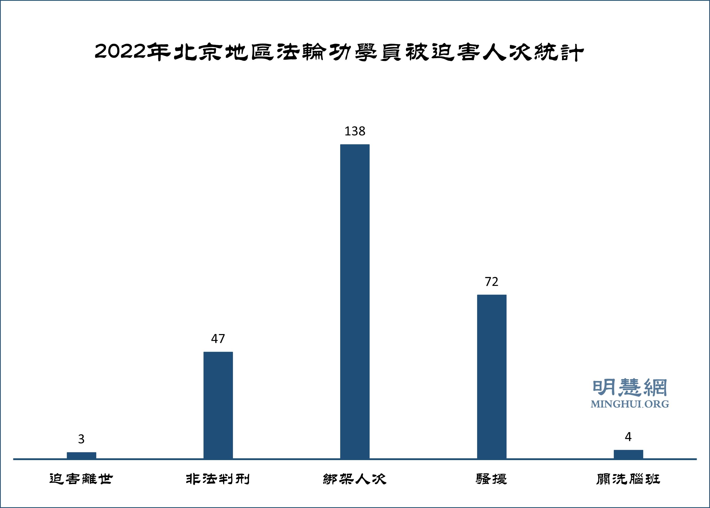 ![]() 图:2022年北京地区法轮功学员被迫害人次统计 |