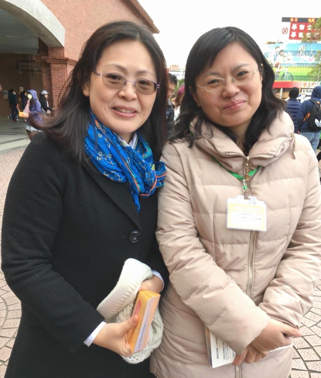 ![]() 图2:孟丽(右)于二零二二年在“淡水捷运站”推广神韵时,与学员合照。 |