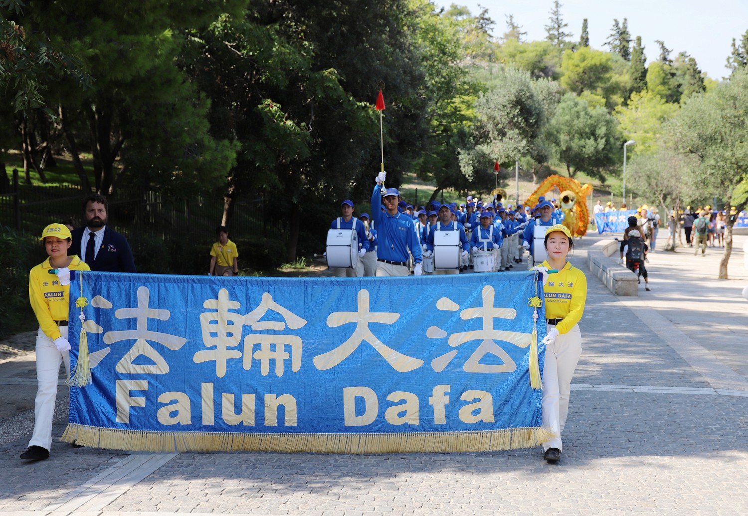 游行队伍由欧洲天国乐团引领,“法轮大法好”及呼吁停止迫害的队伍。线路由柯基亚广场(Kotzia Square)开始,经过著名的宪法广场(Syntagma square),名品购物街(Ermou Street),蒙纳斯提拉齐广场(Monastiraki square),瑟赛欧步行街(Thissio Street)。