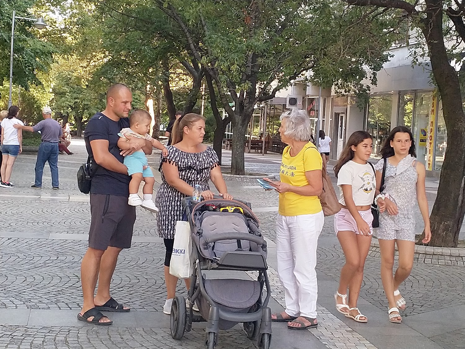 九月十六日和二十三日,法轮功学员来到普罗夫迪夫,在卡梅尼察楼梯对面繁忙的购物街上设立信息亭,传播法轮功的真相。