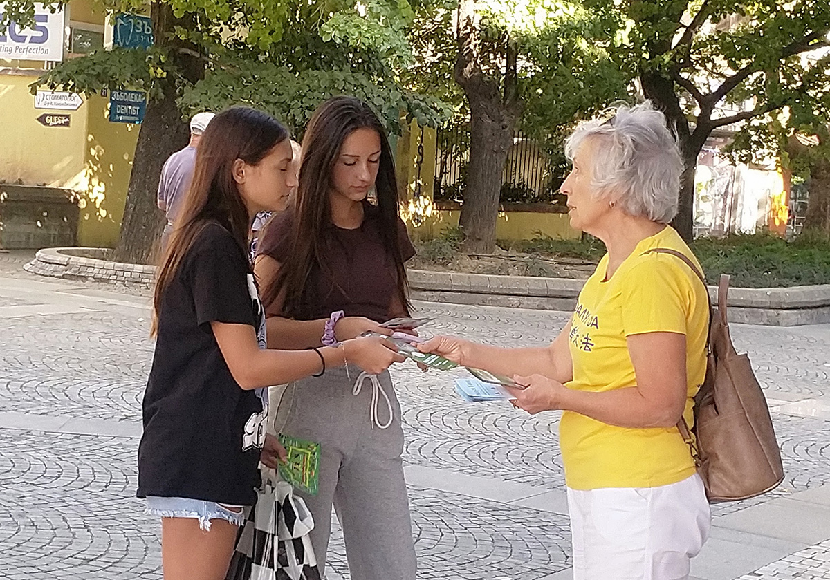 二零二三年九月九日,来自保加利亚旧扎戈拉(Stara Zagora)、普罗夫迪夫(Plovdiv)、佩什特拉(Peshtera)和扬博尔(Yambol)等城市的法轮功学员来到该国第八大城市斯利文(Sliven),向市民介绍法轮大法的美好和中共对法轮功的迫害。