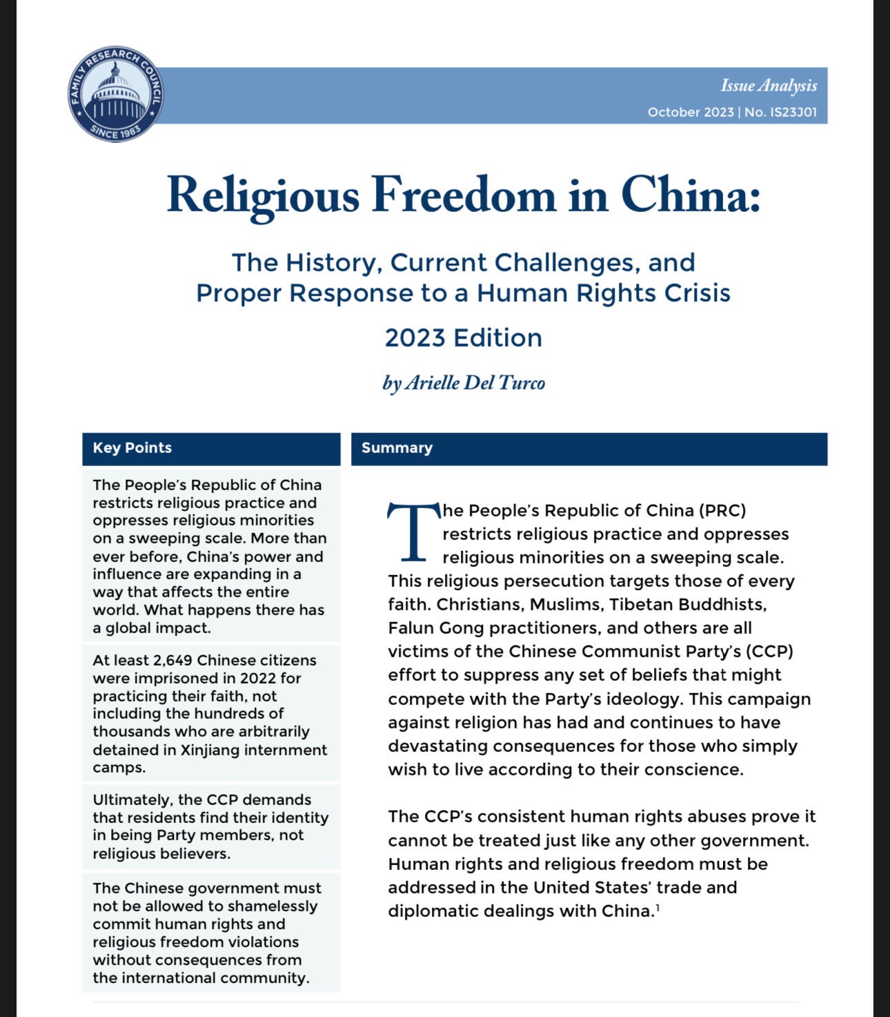 “家庭研究委员会”建议美国和国际社会对中共迫害信仰自由的暴行做出正确的回应。