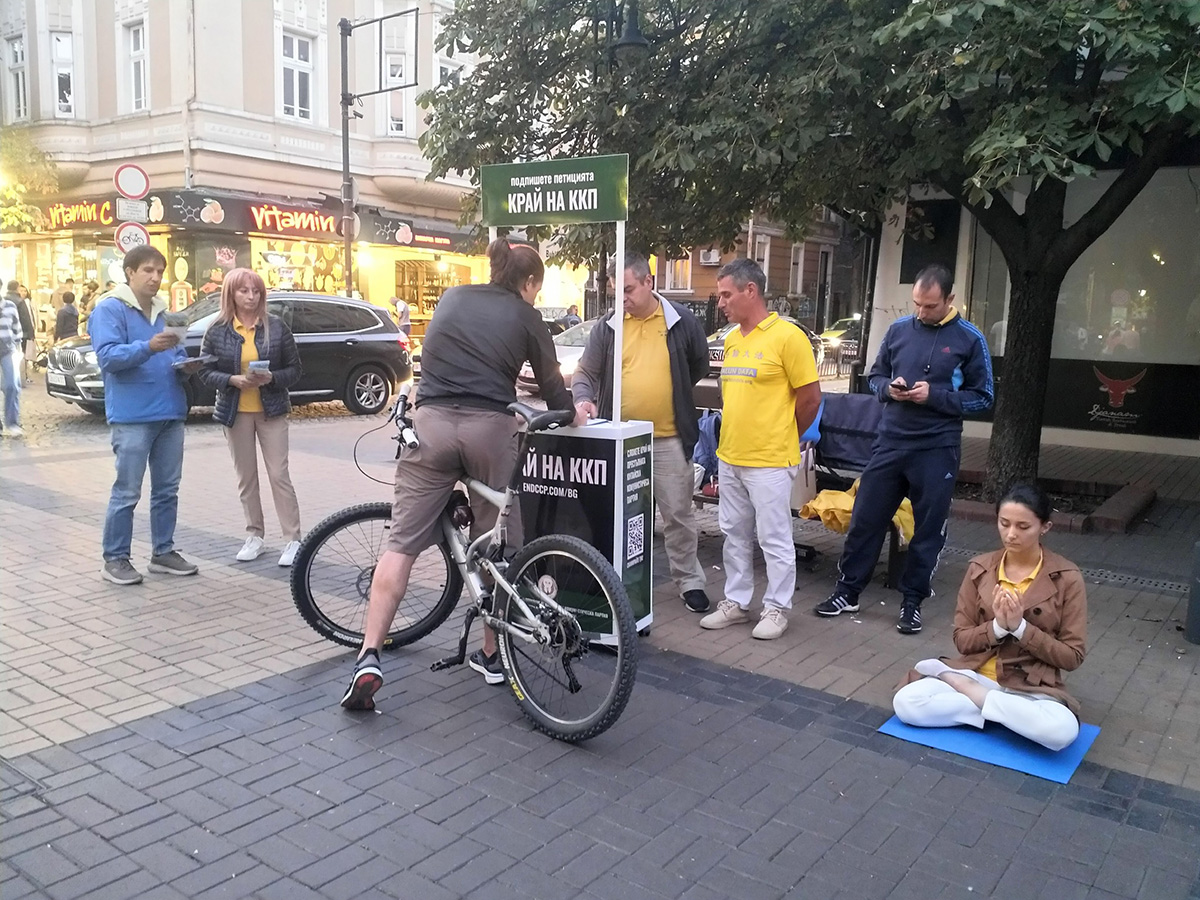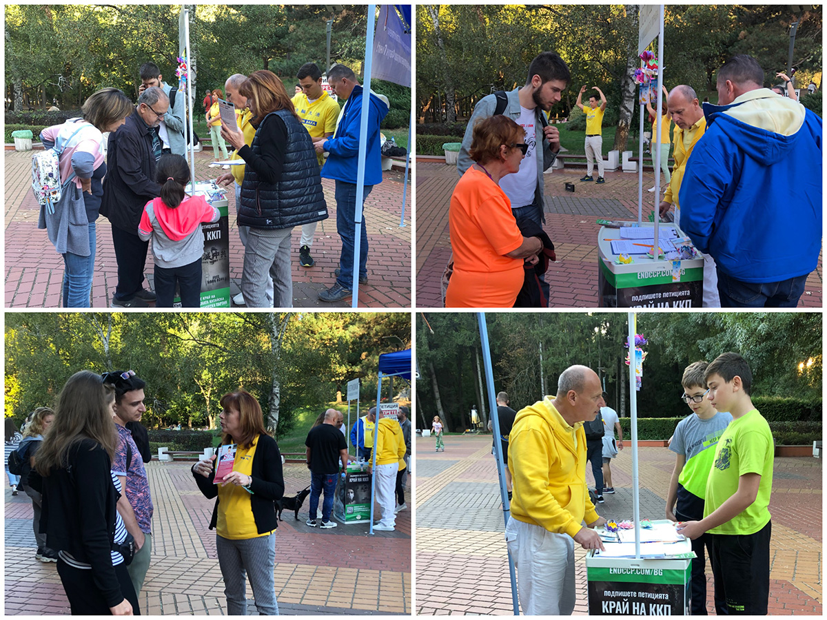 当天的活动设在南公园和市中心的一些最繁忙的地点,学员们除了与索非亚市民分享法轮大法对心灵和身体的受益外,还向人们讲述了已经持续了二十四年的中共对中国法轮功学员的迫害。许多人驻足了解真相,并签署支持法轮功学员反迫害请愿书,谴责中共的恶行。