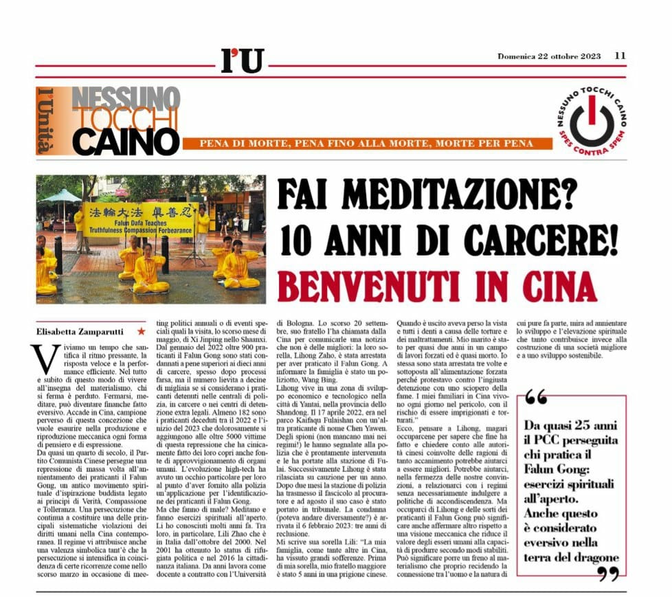 ![]() 图2:意大利前国会议员伊丽莎白·赞珀鲁蒂(Elissabetta Zamparutti)于二零二三年十月二十二日在IU报上发表的文章的截图。 |