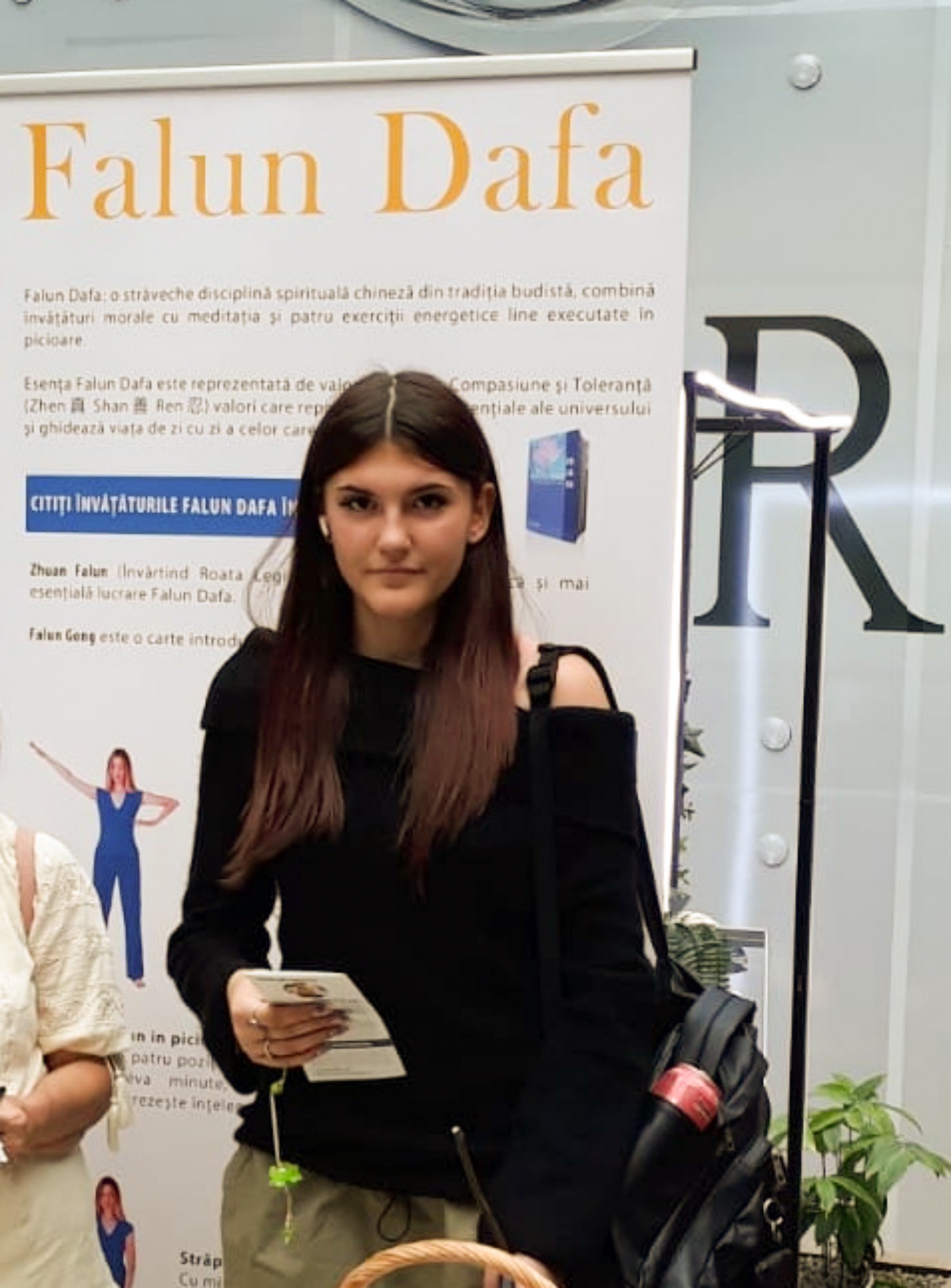 亚历山德拉(Alexandra)是一位来自康斯坦察的学生,她很仔细地聆听学员对法轮大法的介绍,她钦佩法轮功倡导的真、善、忍原则:“人们尊重真、善、忍的原则真好,因为这能够开创一个更美好的世界。”