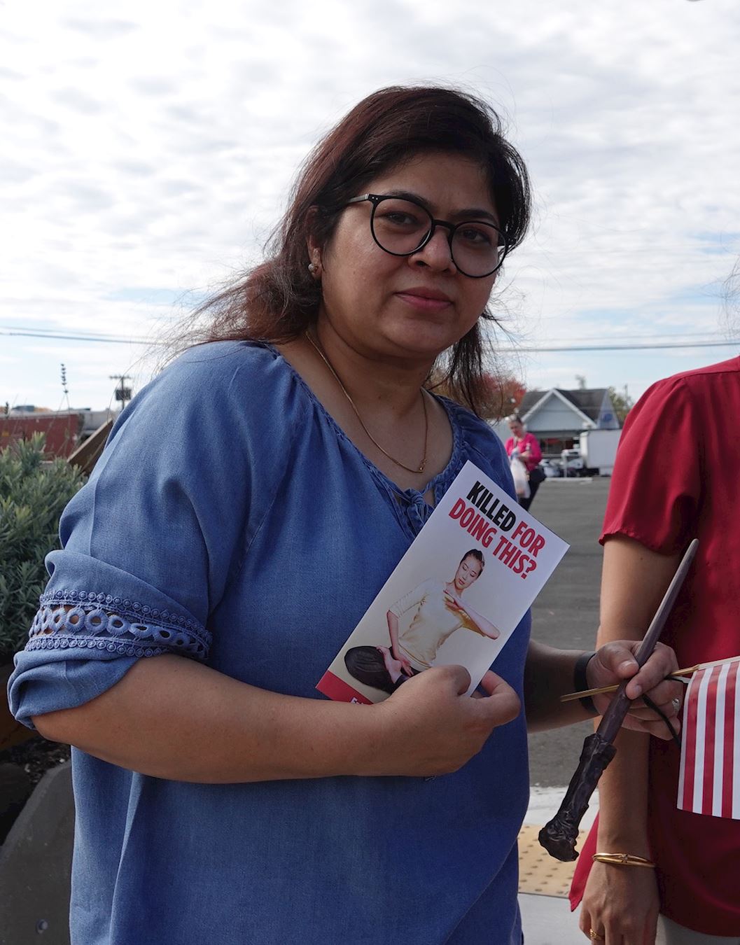 吉奥迪波瓦伊(Jiodipoiwai)是一所小学的老师。她说自己是印度裔,对打坐很感兴趣,看到花车上法轮功学员演示的功法,她很喜欢,打算上网查询更多信息。她说,法轮功学员传递的真、善、忍太棒了。