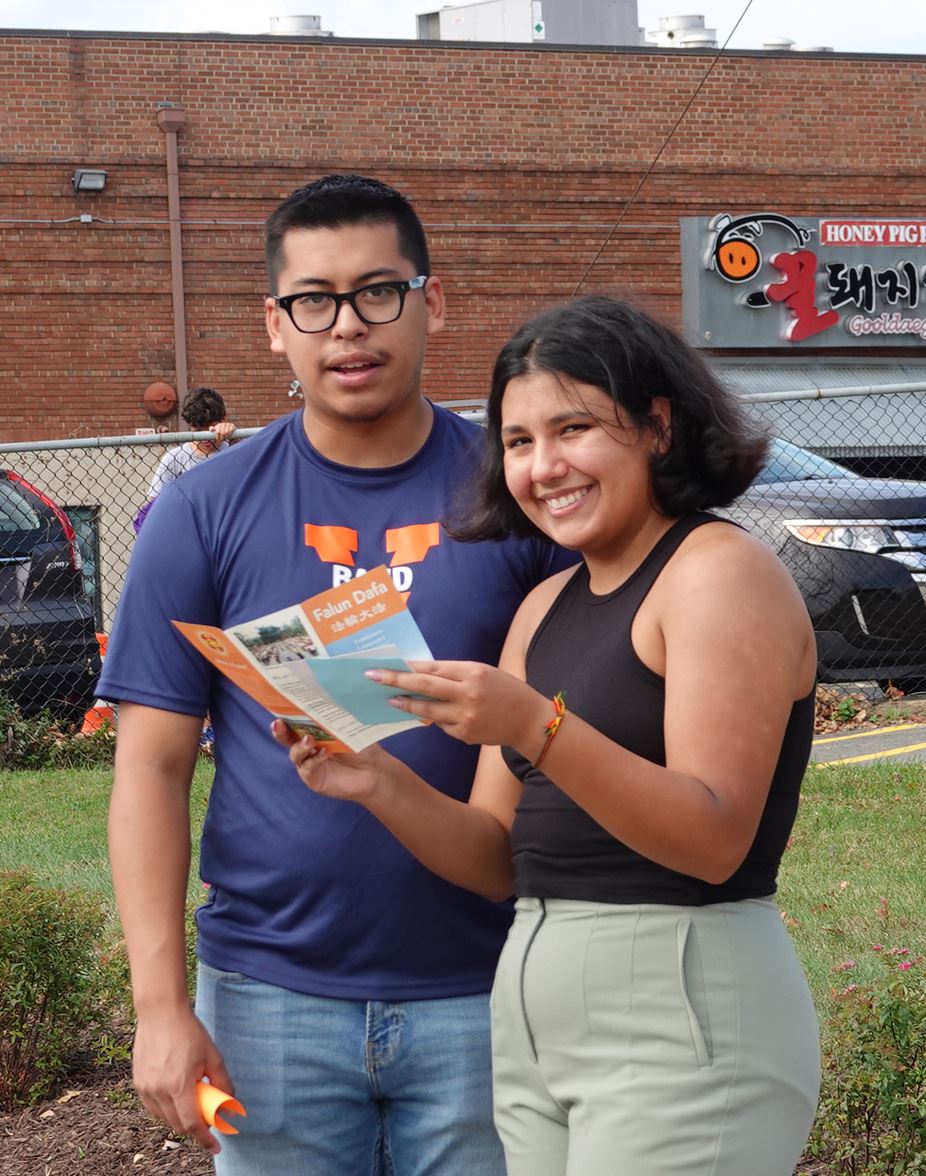 ![]() 图11:人们接过传单后当场阅读,了解法轮大法。 |