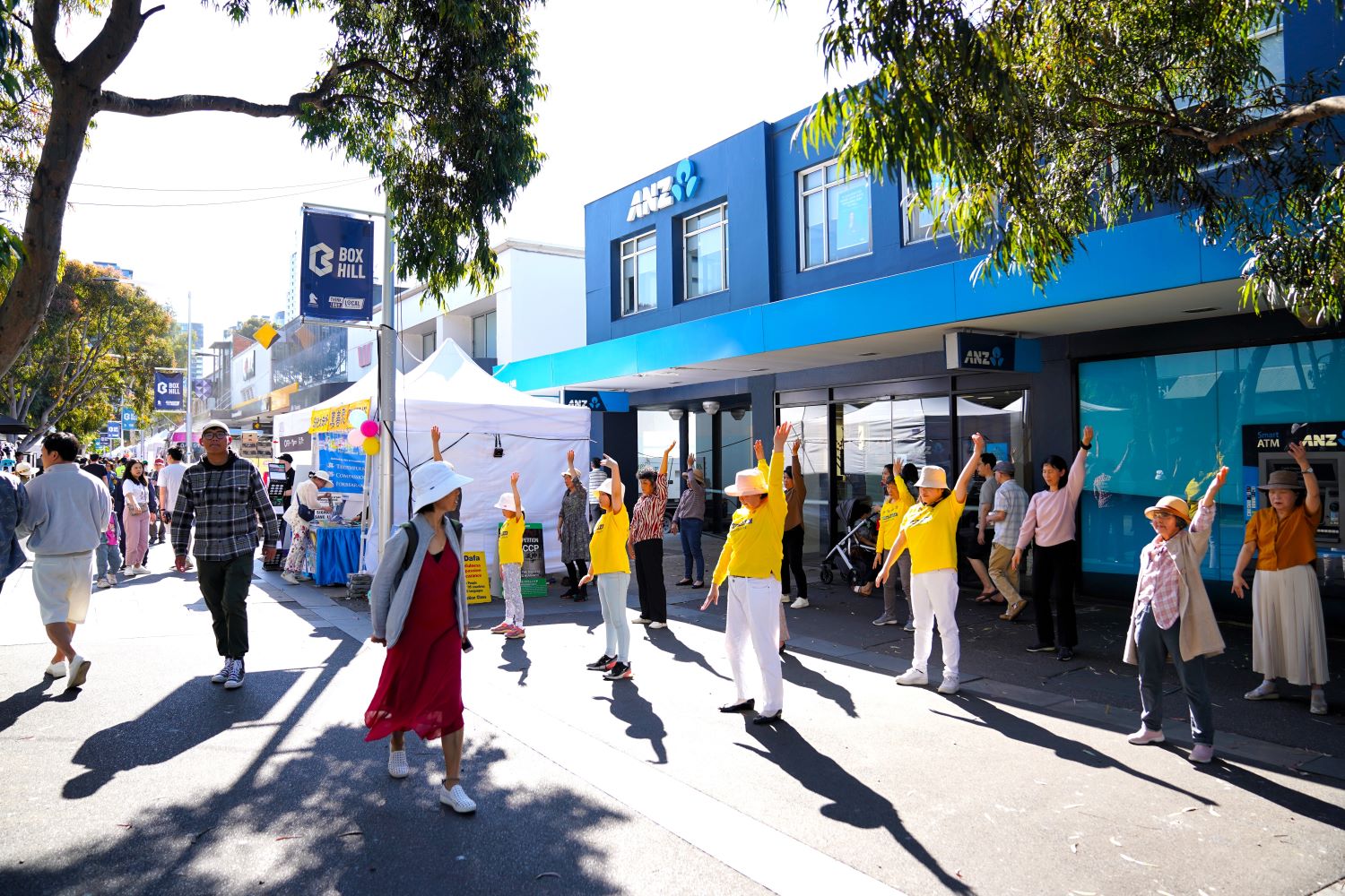 园游会由墨尔本台湾商会主办,美食和传统歌舞表演吸引民众举家前来参加。一片喧闹中,法轮大法的展位与众不同,学员们静静地展示法轮大法的五套功法,祥和而优美。也有学员为过往行人发放真相资料,同时揭露中共迫害法轮功的真相。