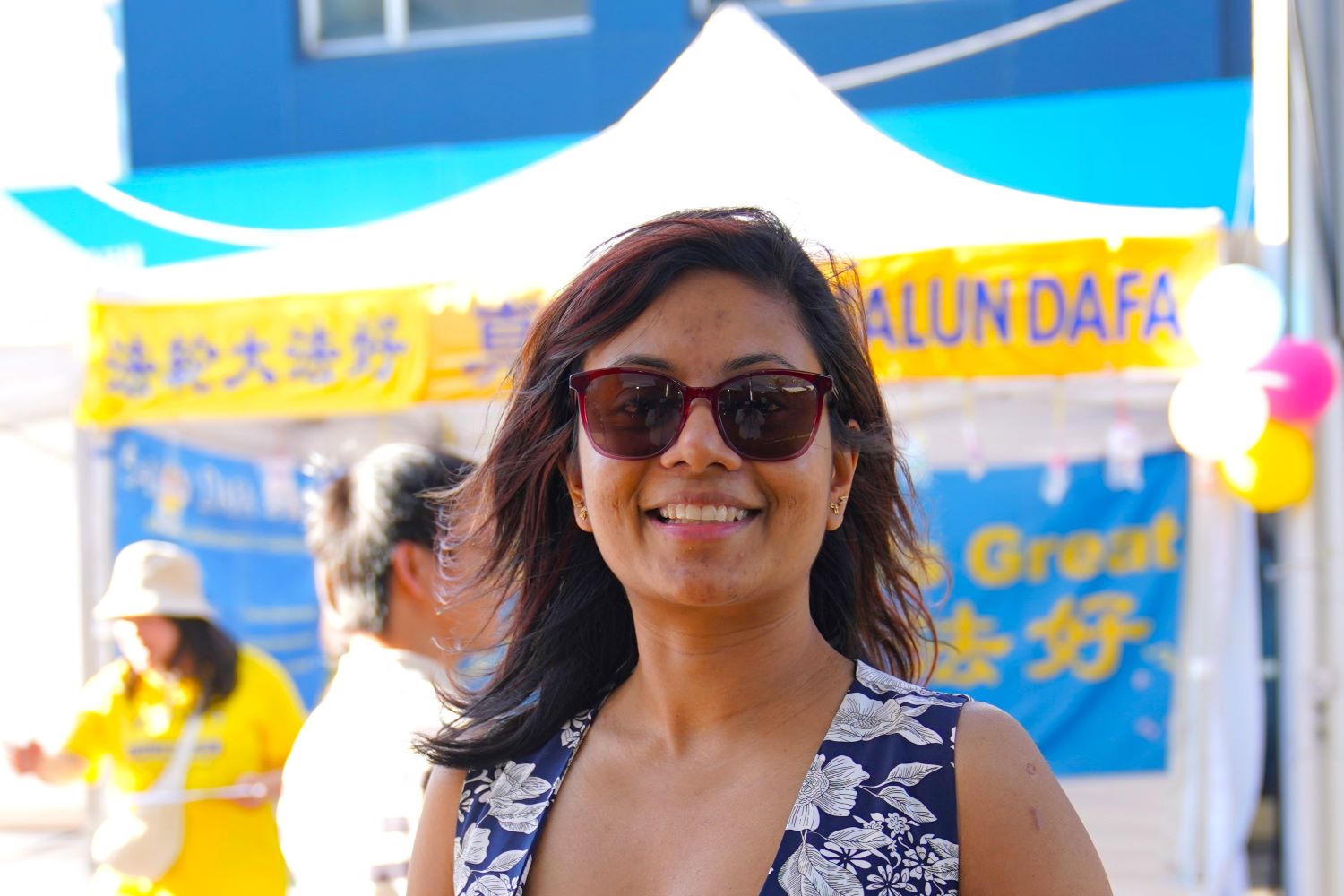 来自墨尔本东林伍德(Ringwood East)区的居民佩明德拉・加马吉(Pemindra Gamage)是一位医生。这是她第一次听说法轮大法。通过学员的详细介绍,她十分认同大法真、善、忍的原则,并表示大法会造福全人类。