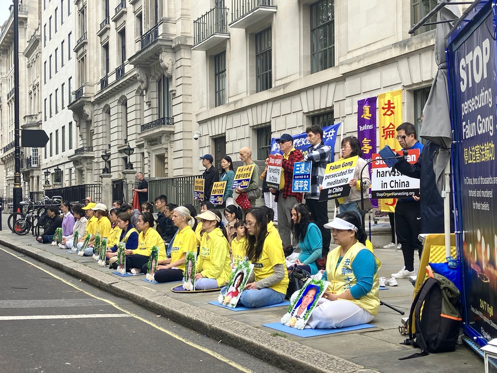 ![]() 图1~3:二零二三年十月一日,法轮功学员在伦敦中使馆前举行和平抗议活动,揭露中共迫害法轮功长达二十四年的真相。 |