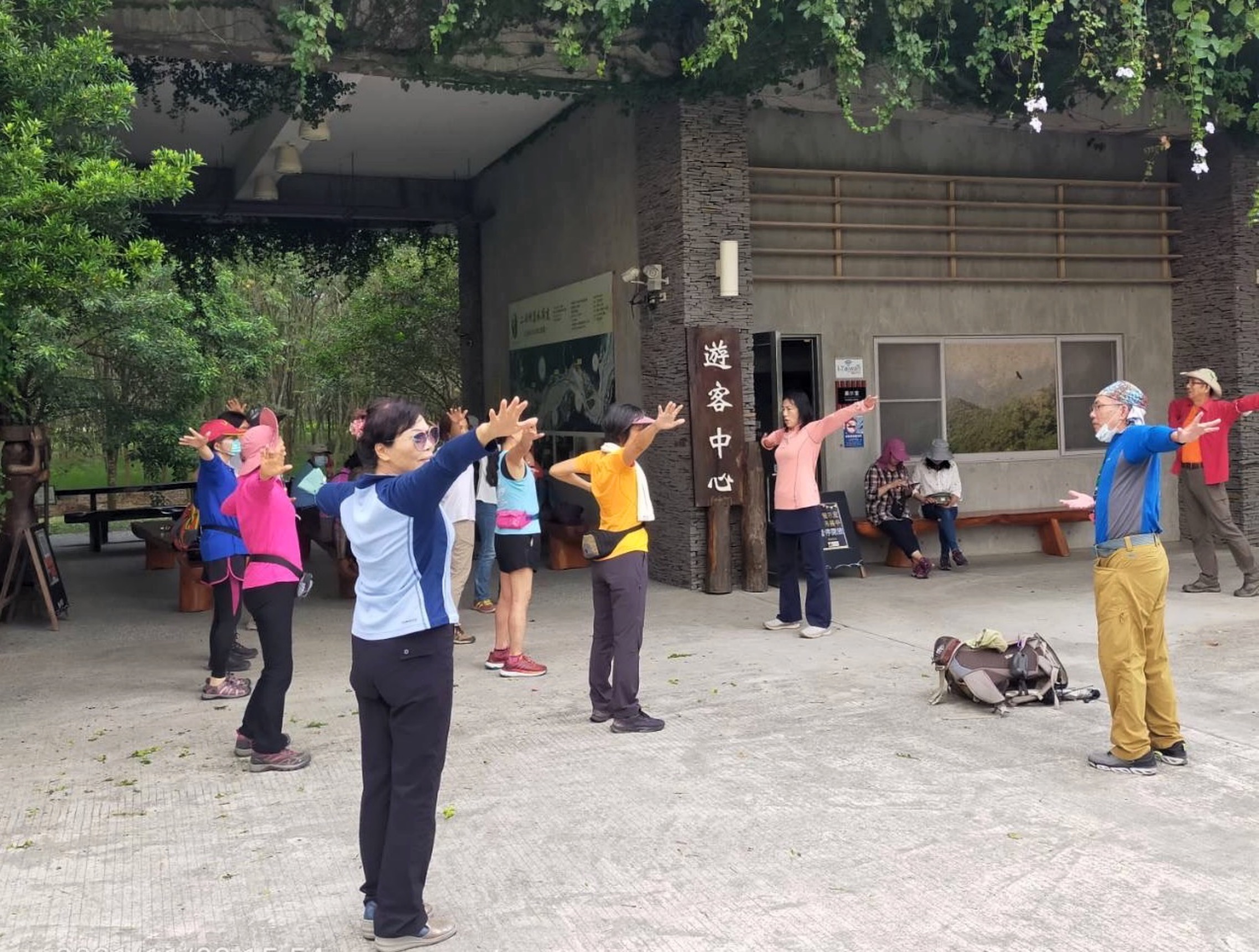![]() 图4:有一次,在登山出游过程中,江霖在游览车上讲述自己僵直性脊椎炎炼法轮功炼好了,众人啧啧称奇,下车後马上让她教功,於是,她教大家学炼了法轮功的第一套功法──佛展千手法 |
