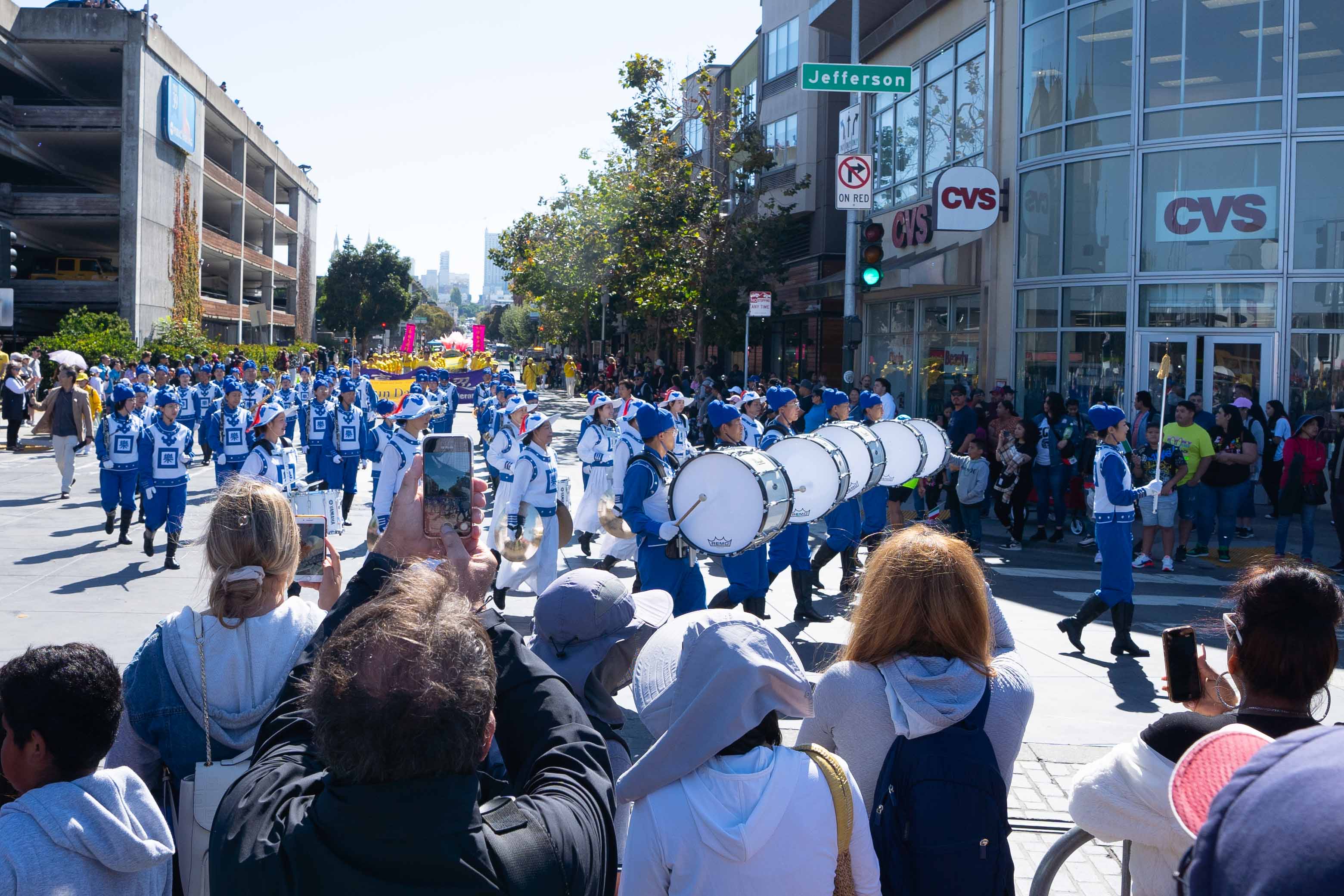 旧金山居民伊冯·弗雷泽(Yvonne Frazier)说,“他们(法轮功学员)非常棒,动作整齐化一,协调一致,很美。服装也很好看,他们一定为参加游行做了充分的准备。”