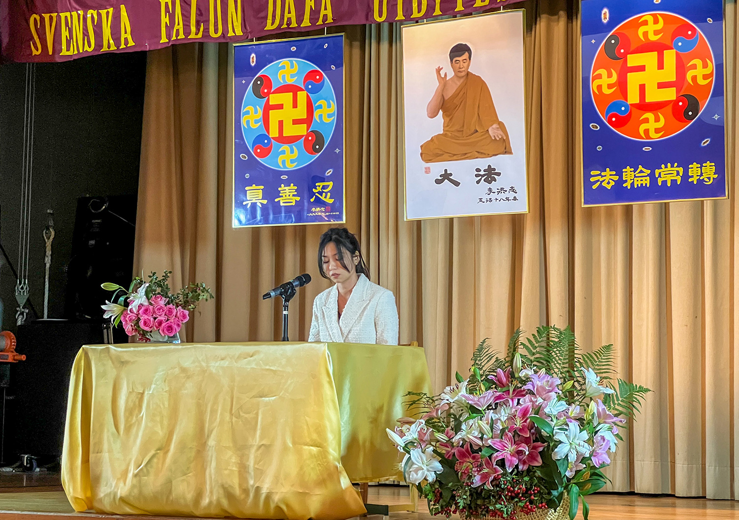 来自斯德哥尔摩的奥尔加(Olga)修炼法轮大法有十年了。修炼前性格内向,不善交际、特别不愿与人讲话。她表示自己能成为一名大法弟子是她一生最高的荣耀,法轮大法给了她一个全新的生命,让她变得越来越勇敢,对自己也越来越有自信。现在她能正常的与人交流了。
