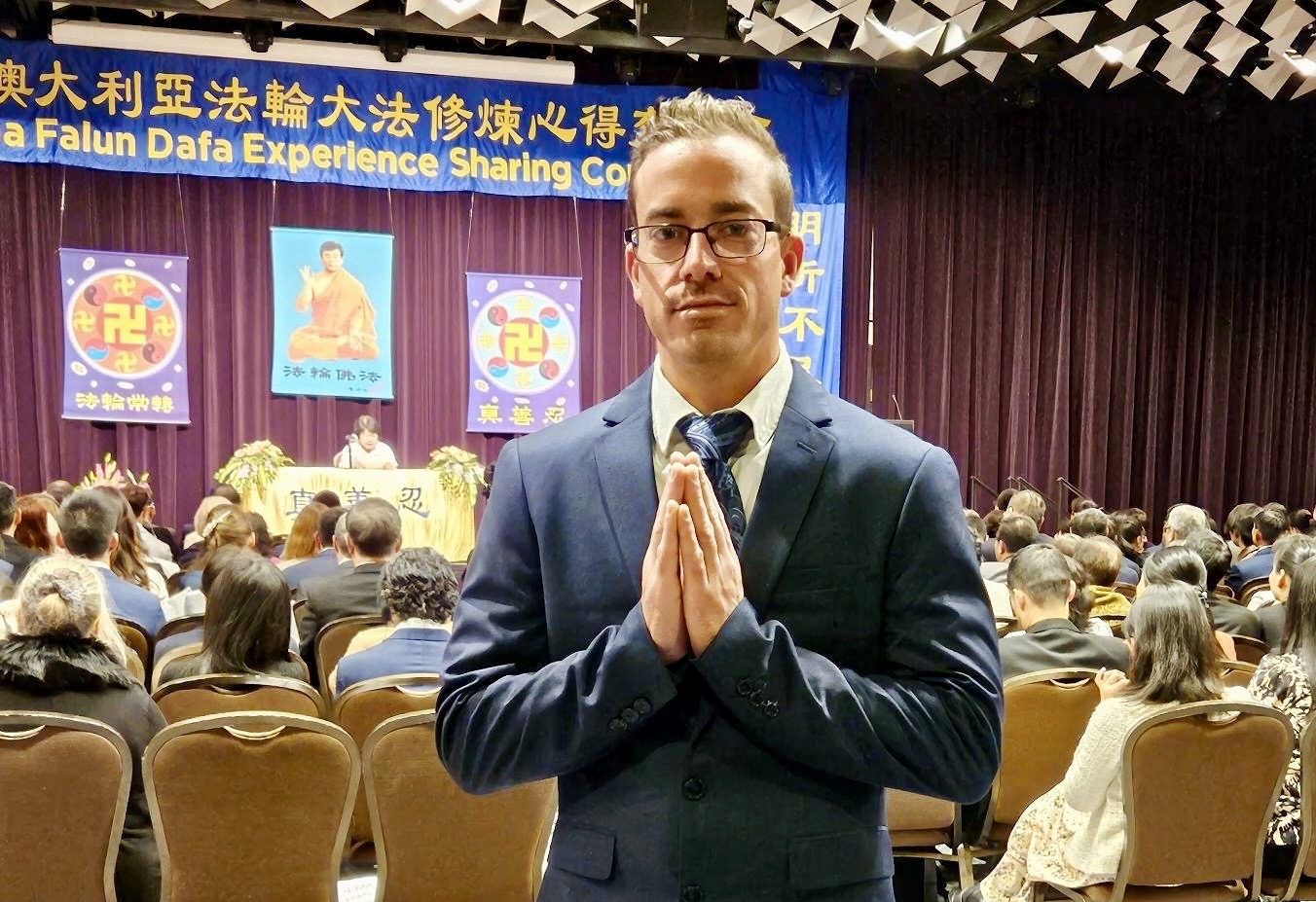 墨尔本新学员肖恩·里德(Sean Reid)修炼法轮大法一年多,他说:“我参加法会是为了更多的了解如何修炼、如何提高。我听到一位学员分享关于安逸心的话题,它之所以突出,是因为我也有懒惰的问题。现在我意识到,当我结束一天的工作回到家时,我可以更明智地利用时间,多学法、多炼功,而不是躺下来。多炼功,会感觉更有活力,并且面对一切事情,保持修炼人的心态。”