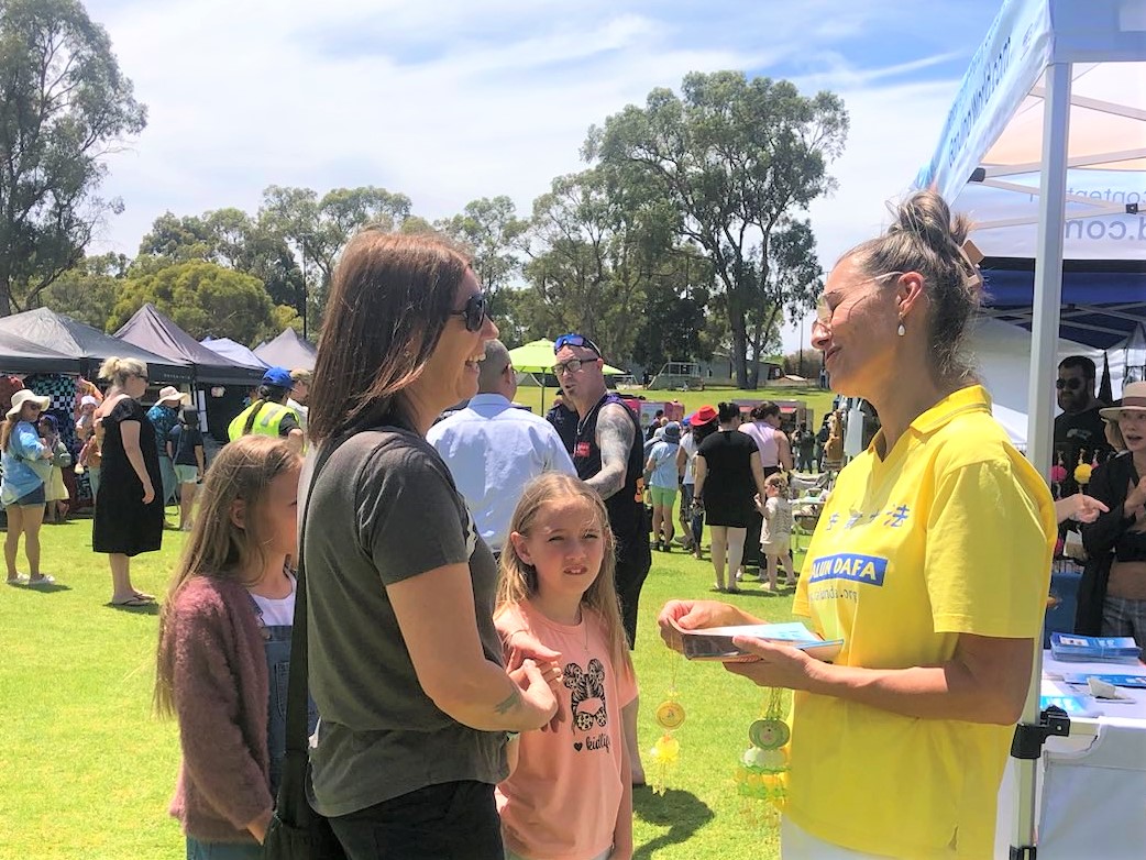 ![]() 图1~2:二零二三年十一月十一日,西澳法轮功学员在奎纳纳社区扶轮社博览会上设立展位,向当地居民介绍法轮功。 |