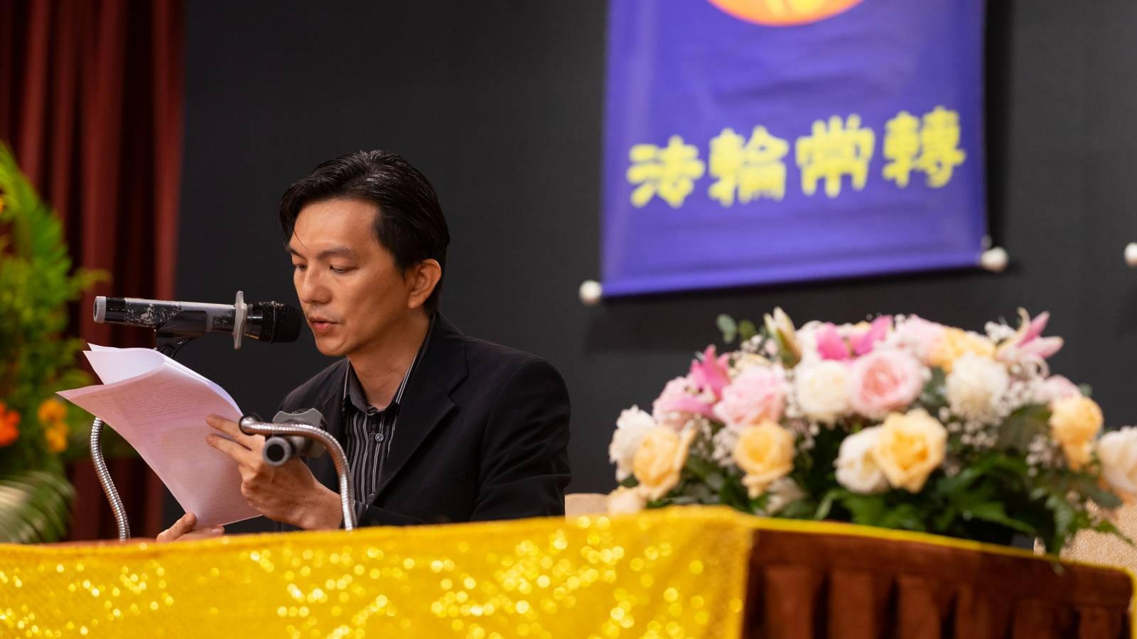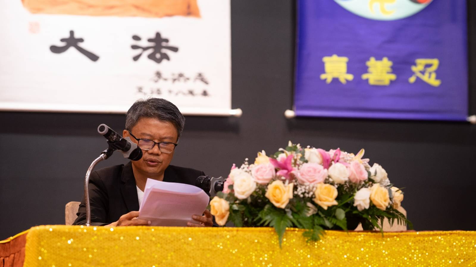 来自吉隆坡的外企高管谢先生首先交流了在救众生、弘法中的心得体会。他说二零零八年在上海刚得法看了《转法轮》后,他就认识到“这是一本真正往高层次上带人的天书”,学法时“感觉到师父时时刻刻都在看管着我”。