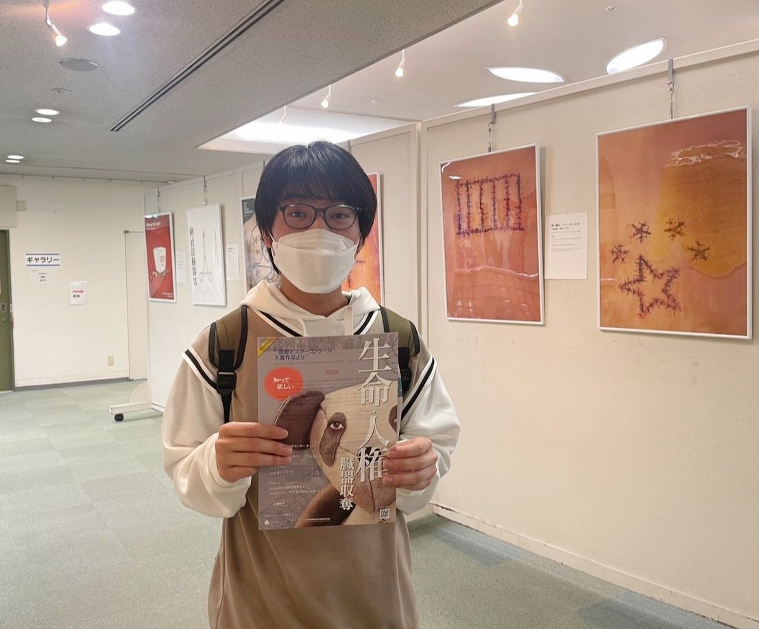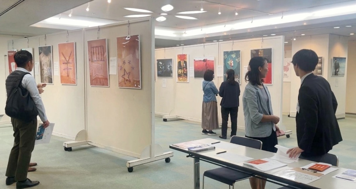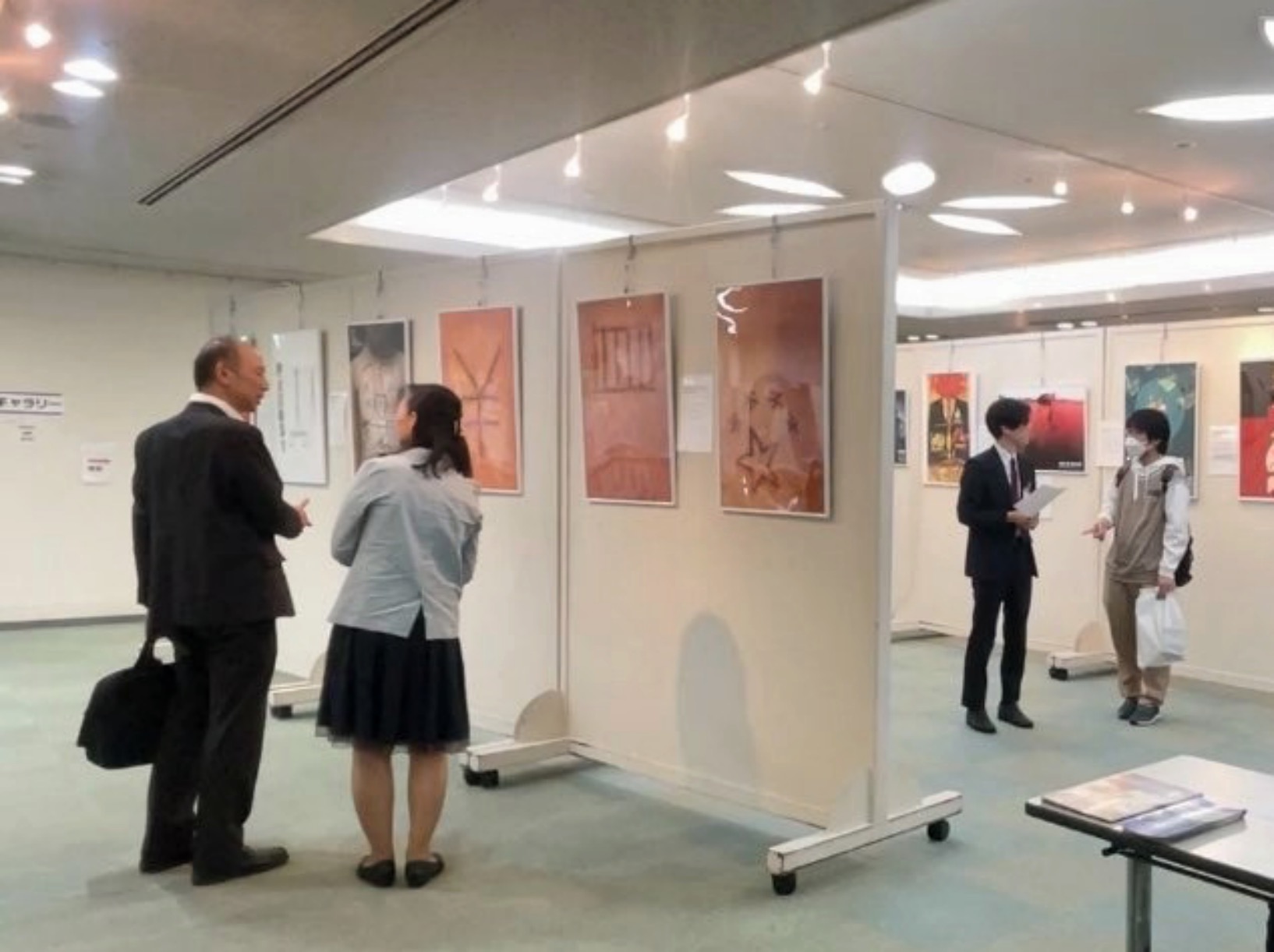 十月二十六号,前大阪府议会议员西村日加留先生用了长时间仔细观看了每幅作品,并亲切地和工作人员交谈。他还认真看了海报展一角设置的视频。