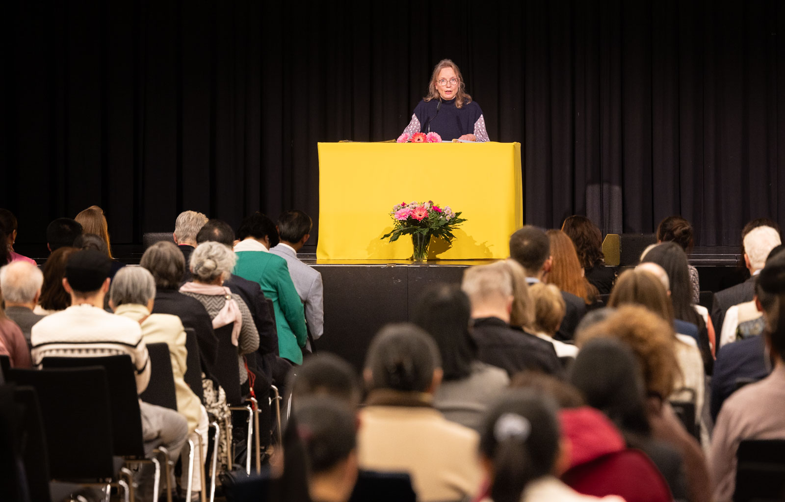 十八位中西方学员上台交流了他们的修炼心得。学员们交流了自己如何在证实法、救人项目中以及在日常生活中,在法上认识法,在矛盾中向内找,放下人心、人念和人情,走出困境,以及救人不怠的心路历程。