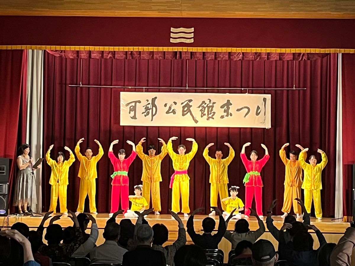 ![]() 图2:二零二三年十一月五日,可部公民馆庆典中法轮功学员在舞台演示法轮功的五套功法。 |