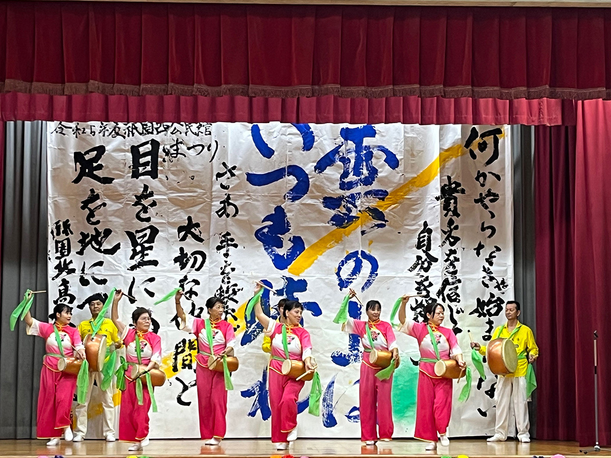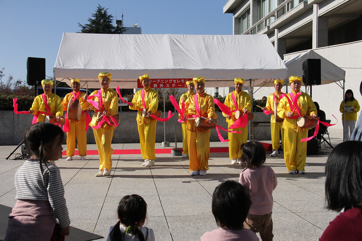 ![]() 图4:法轮功学员在祇园西公民馆庆典中舞台表演腰鼓舞。 |