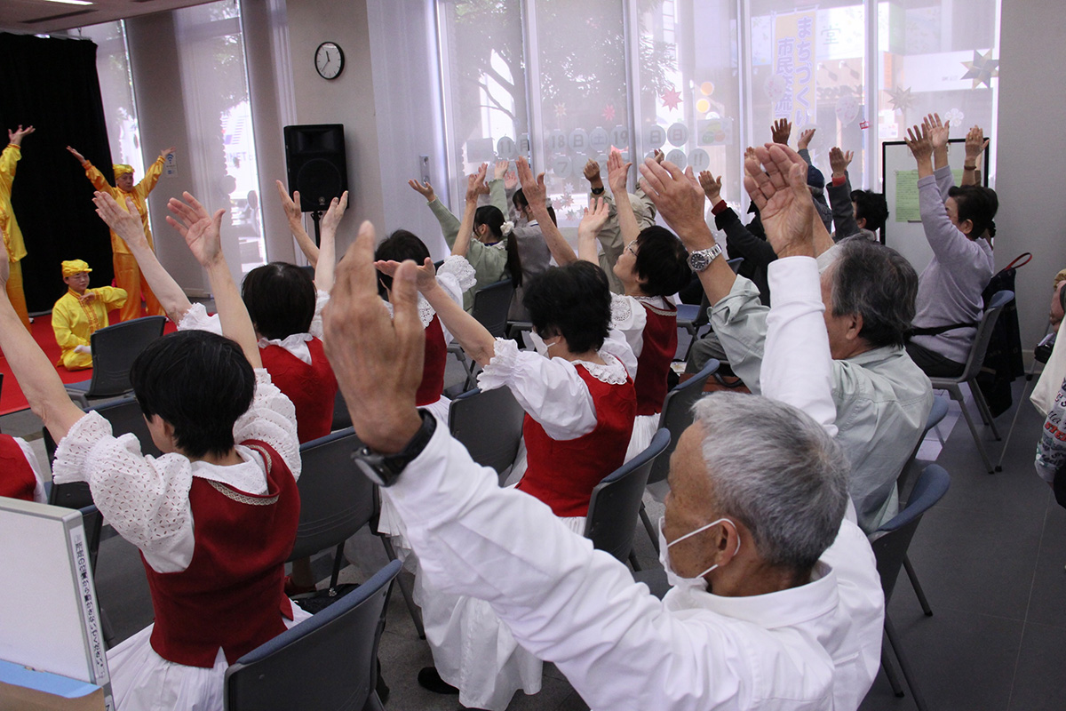 ![]() 图3:二零二三年十一月十二日,法轮功学员在只园西(Gionnishi)公民馆庆典中演示法轮功的五套功法。 |