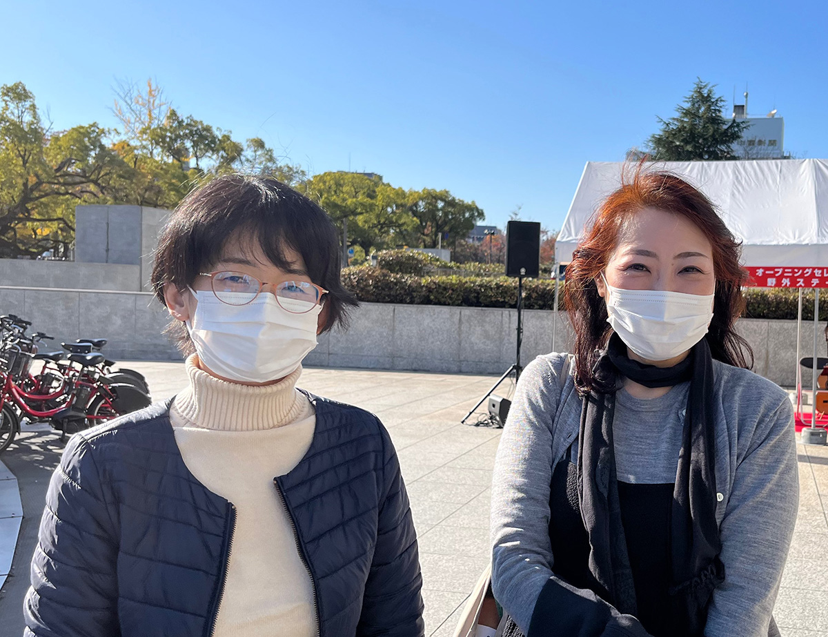 在“国际庆典2023”上,饭冢(Iizuka)女士和池田(Ikeda)女士观看了法轮功学员在屋外舞台的功法展示。结束后,饭冢女士表示:“学炼这个功法感到很放松,想继续学炼。”她还拿了炼功点的详细信息,临走时说:“我们下次再见。”