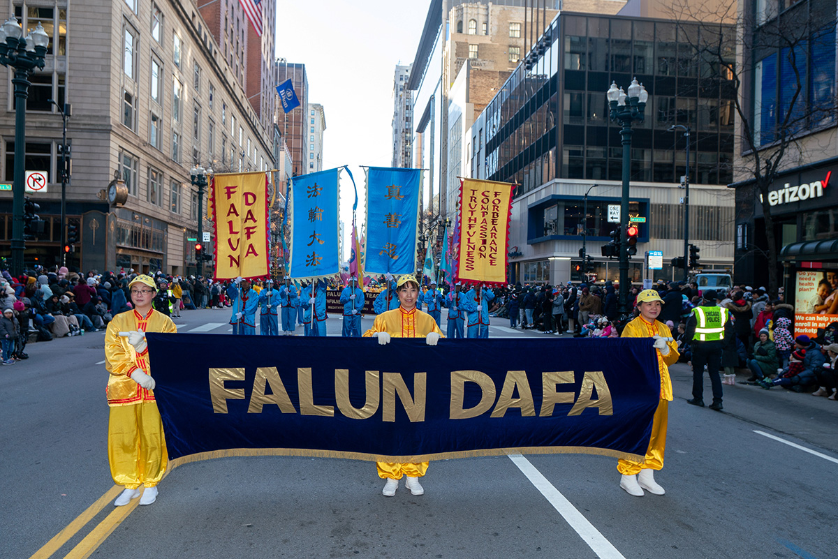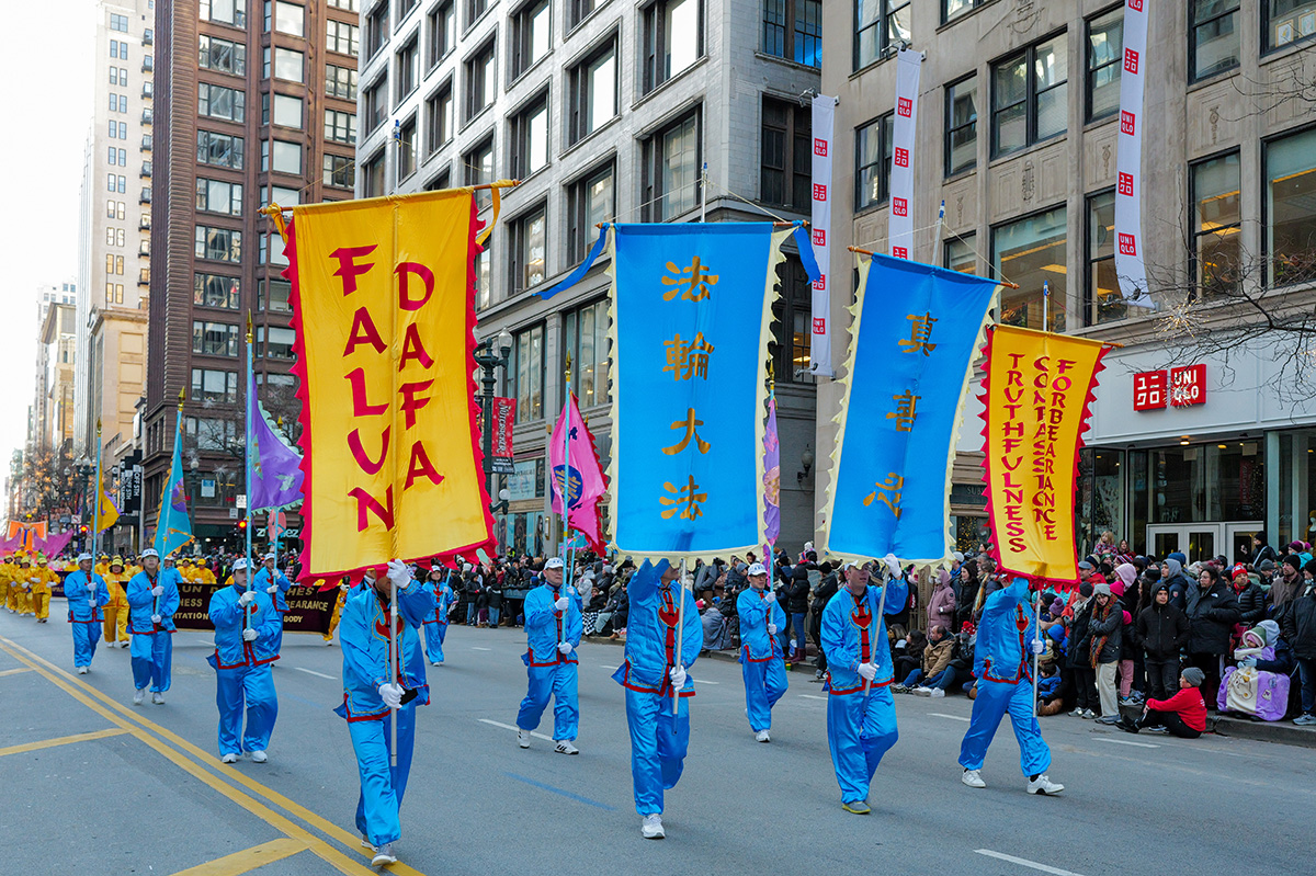 ![]() 图9:二零二三年十一月二十三日,迈克(Mike)在芝加哥感恩节游行中给法轮功学员方阵拍照。 |
