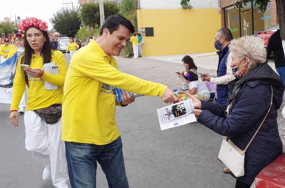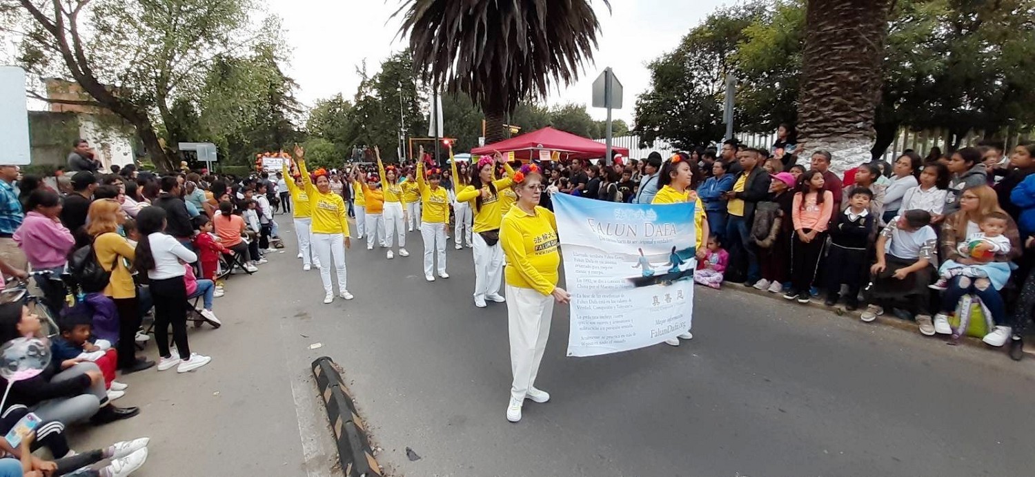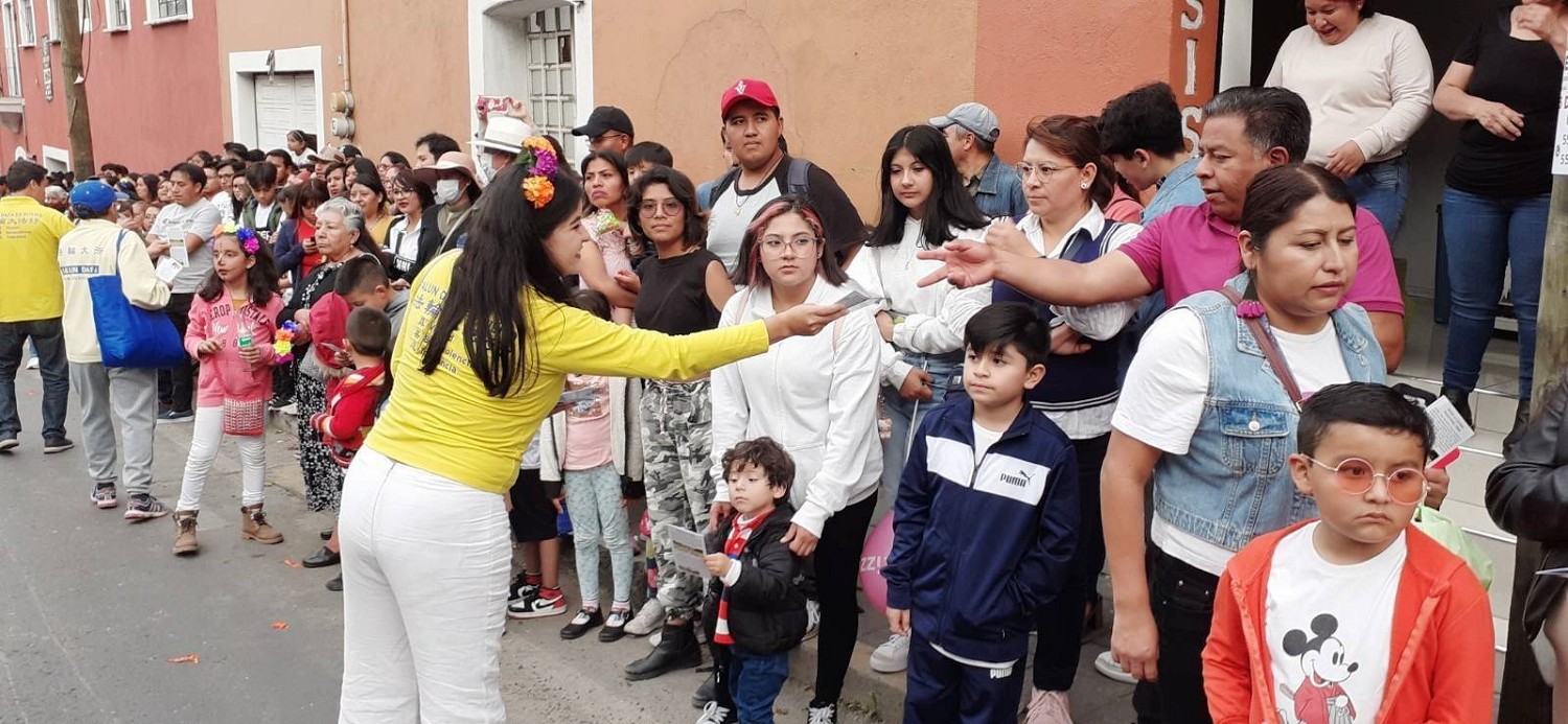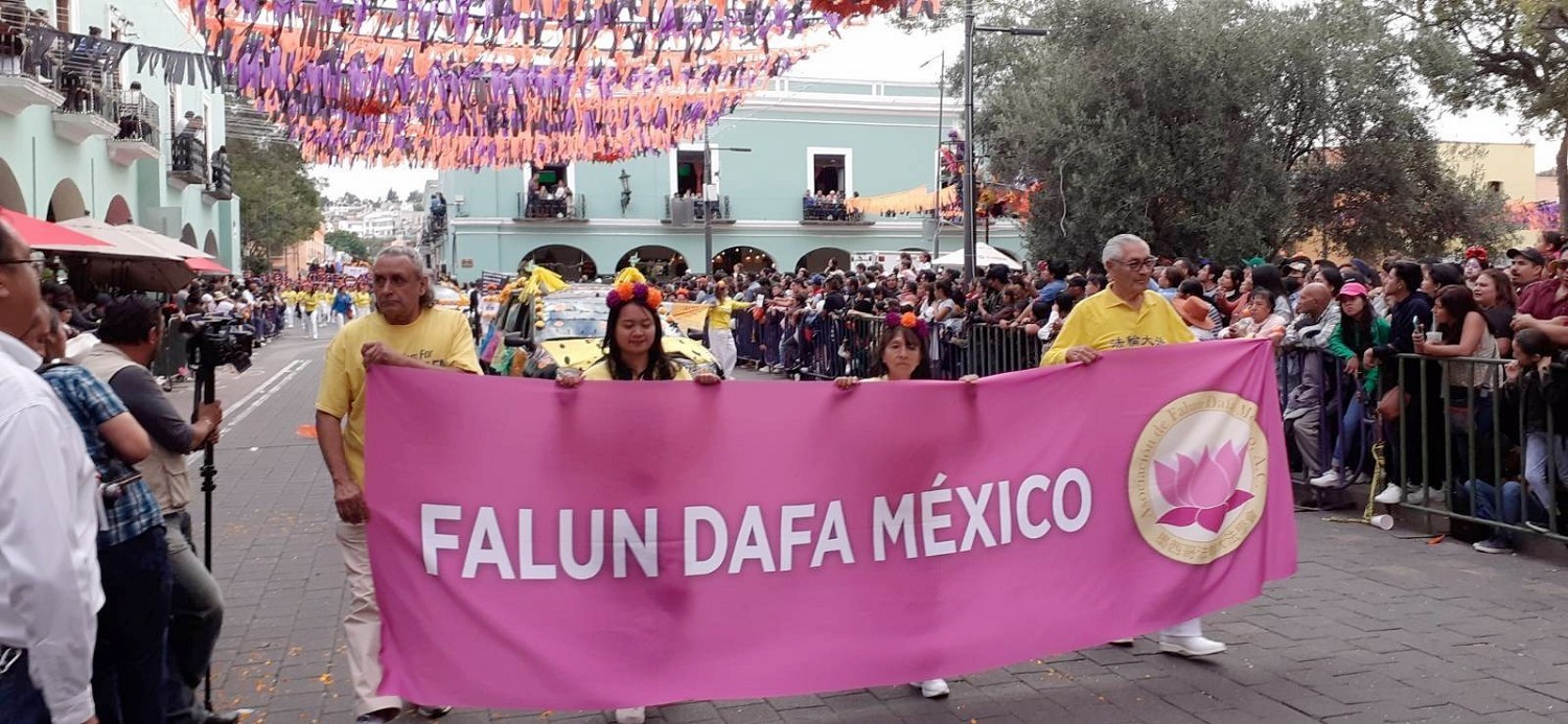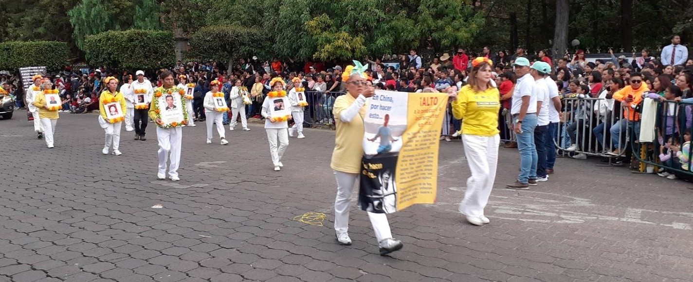法轮功游行方阵中,学员们依次展开“法轮大法在墨西哥”以及法轮功真相和中共迫害法轮功的横幅。向观众及游客揭露自一九九九年以来,中共发动的这场迫害导致无数法轮功学员家破人亡,他们本着真、善、忍的原则,努力做更好的人,却因不放弃自己信仰而遭到迫害、监禁、酷刑,甚至被虐杀、被活摘器官。