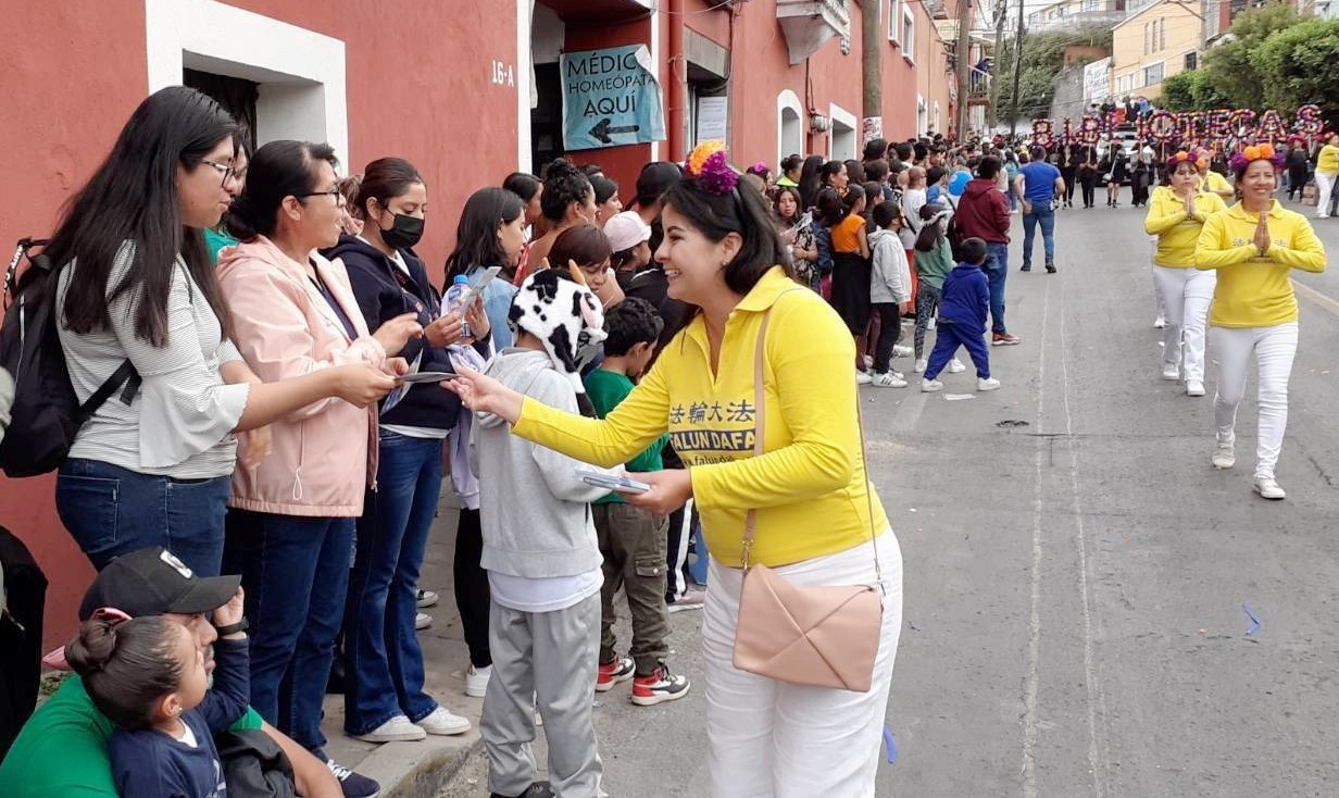 特拉斯卡拉市位于首都墨西哥城东部,是特拉斯卡拉州的首府,这里历史悠久,环境清新宜人。参加此次游行的法轮功学员们来自特拉斯卡拉、普埃布拉(Puebla)等多个墨西哥城市。在游行过程中,观众们挤满沿线街道,他们对法轮功非常感兴趣,不仅主动向学员拿取真相资料,还迫切的想知道如何开始修炼法轮功。
