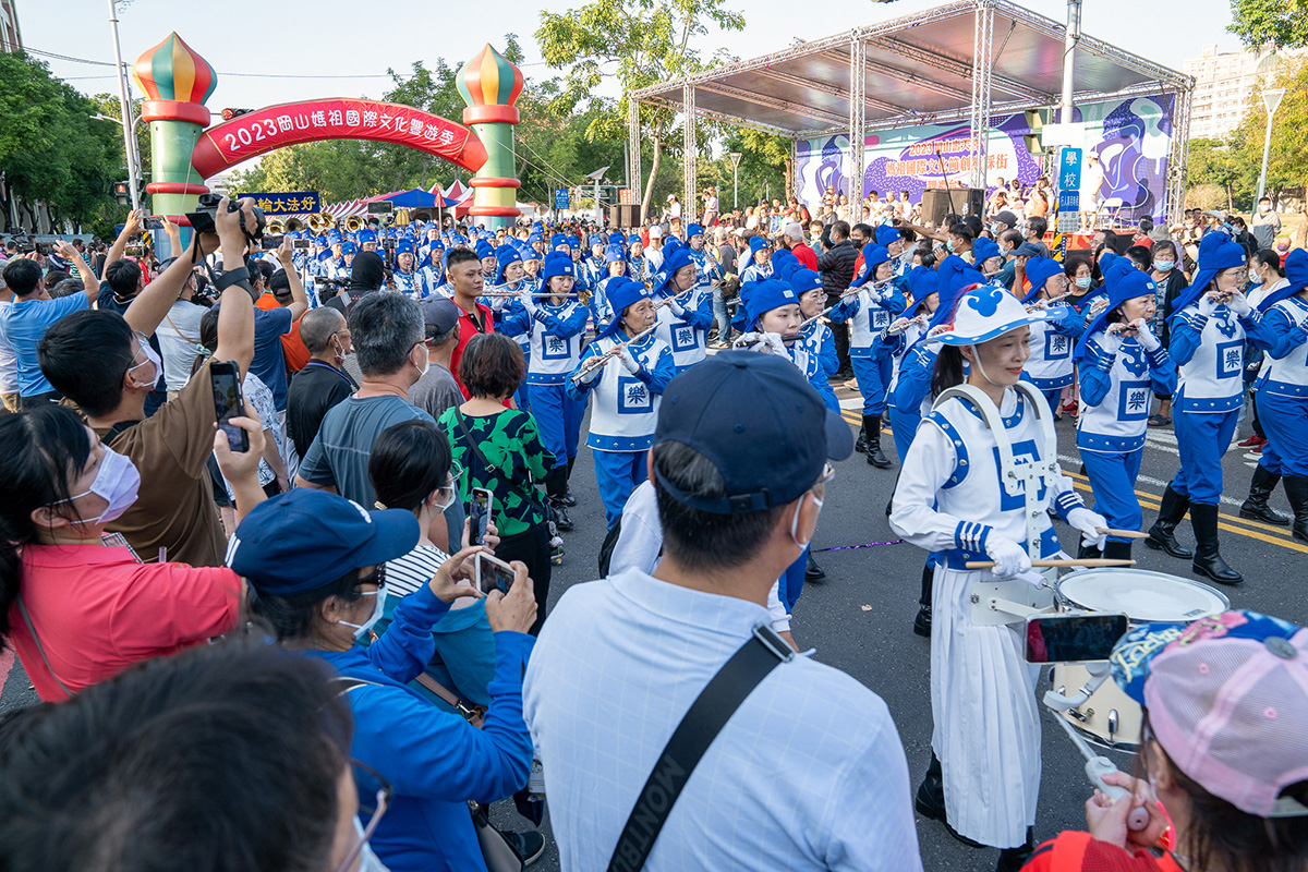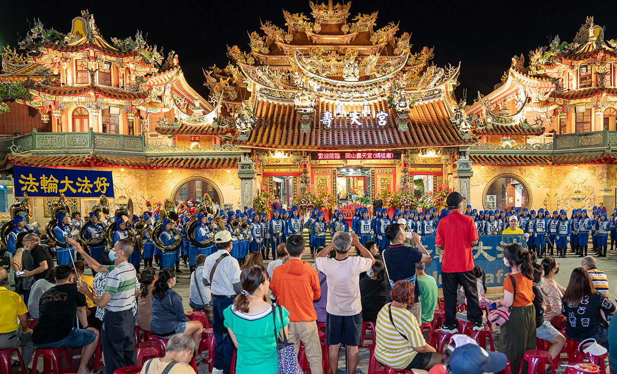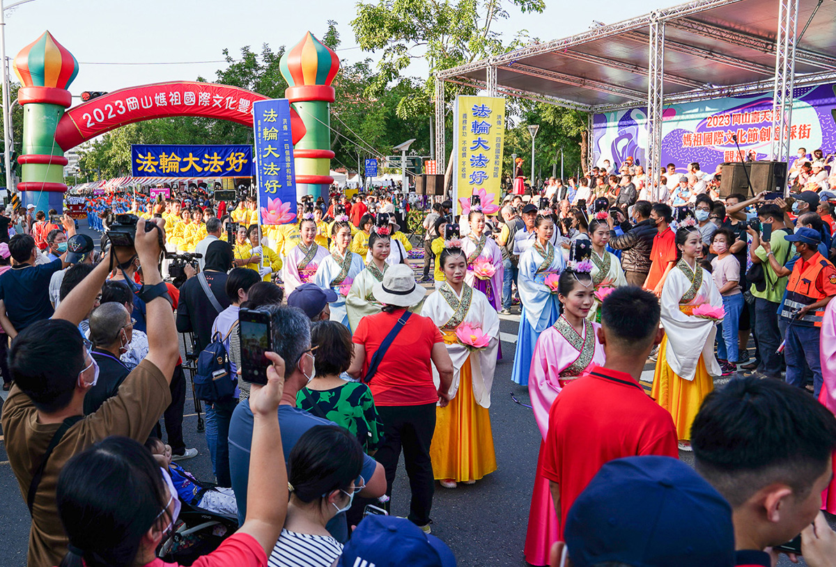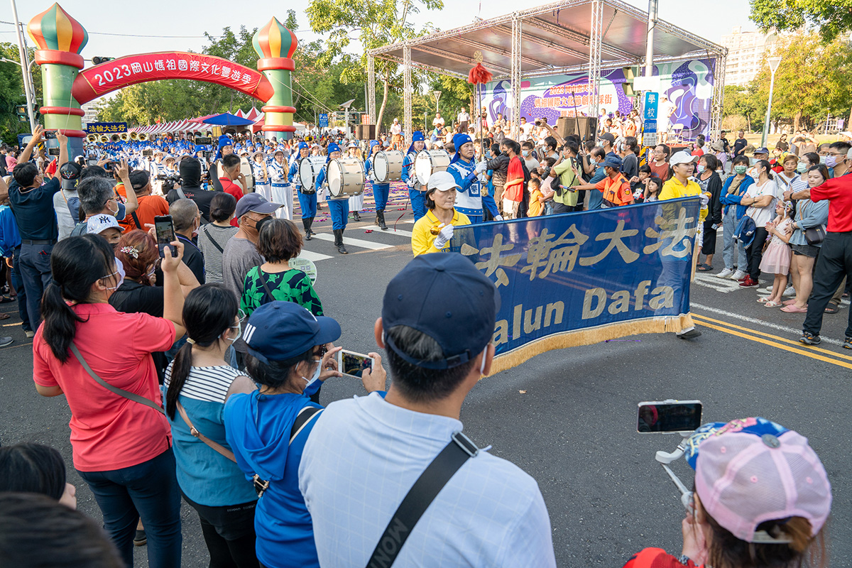 ![]() 图1~2:法轮大法天国乐团等应邀参加台湾高雄2023冈山妈祖文化节,天国乐团引导踩街队伍,揭开活动序幕。 |