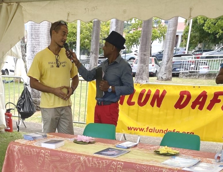![]() 图1:二零二三年九月十六日星期六,在瓜德罗普岛首府巴斯-泰尔(Basse-Terre)的阿尔博广场(Champ d'Arbaud)的协会节上,活动主持人采访法轮功学员。 |
