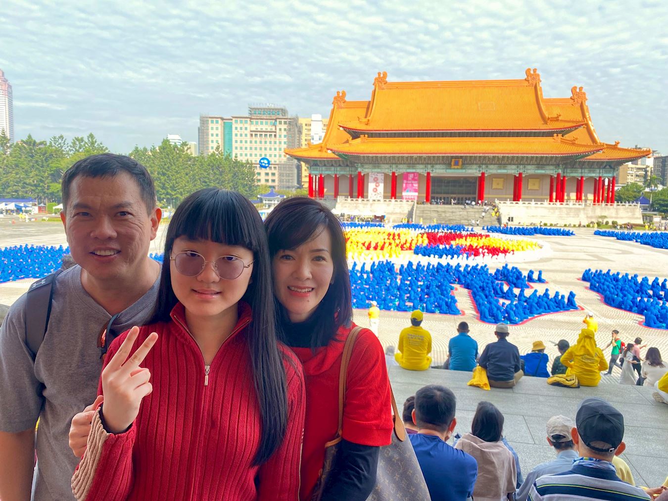 ![]() 图9:新加坡杨先生一家人见证法轮功学员排字活动的盛大。 |