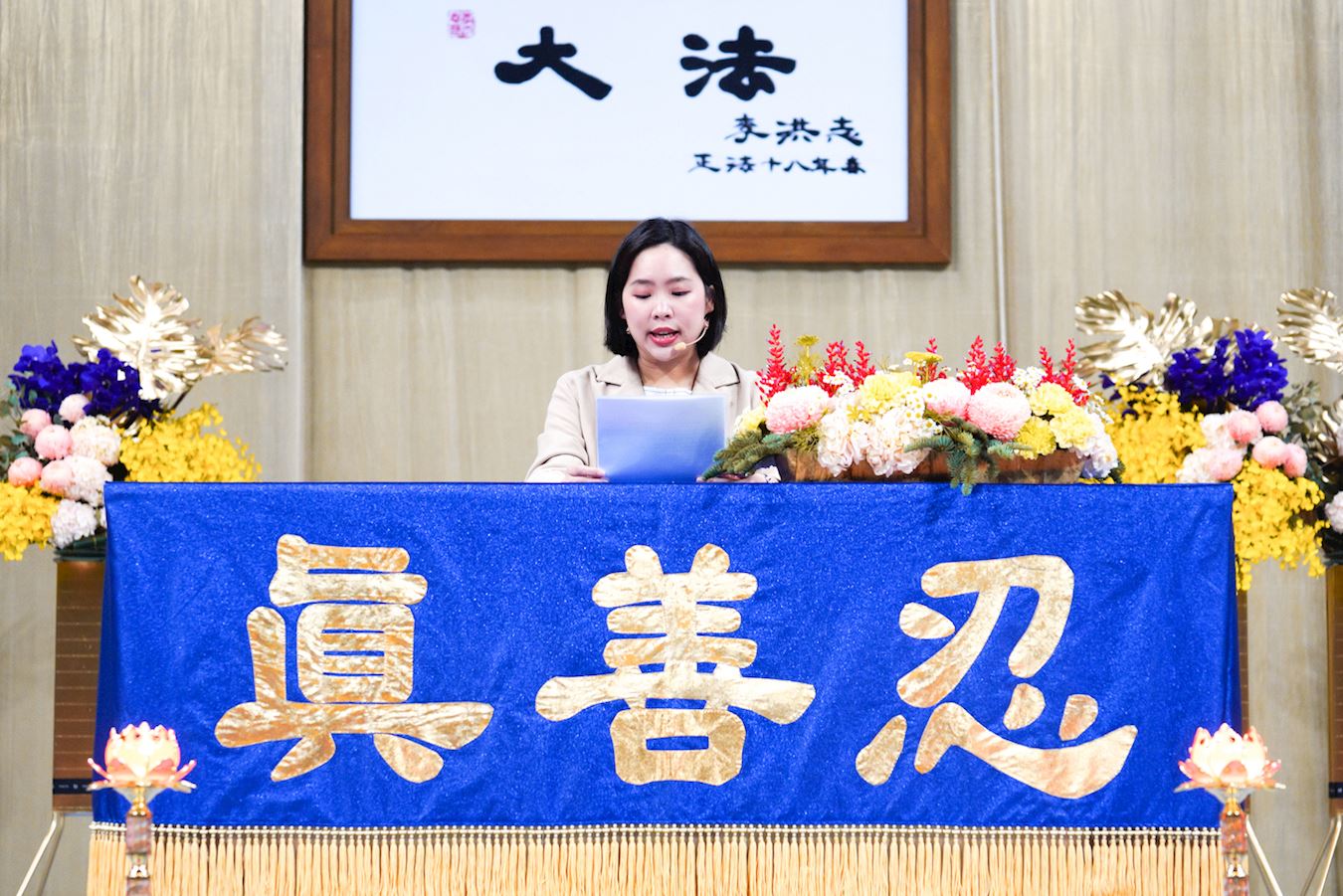 这次法会共有十八位学员发言,交流自己修炼后身心受益,以及在生活中、项目中实修心性、用心救人的体悟与感受,令与会者深受触动。