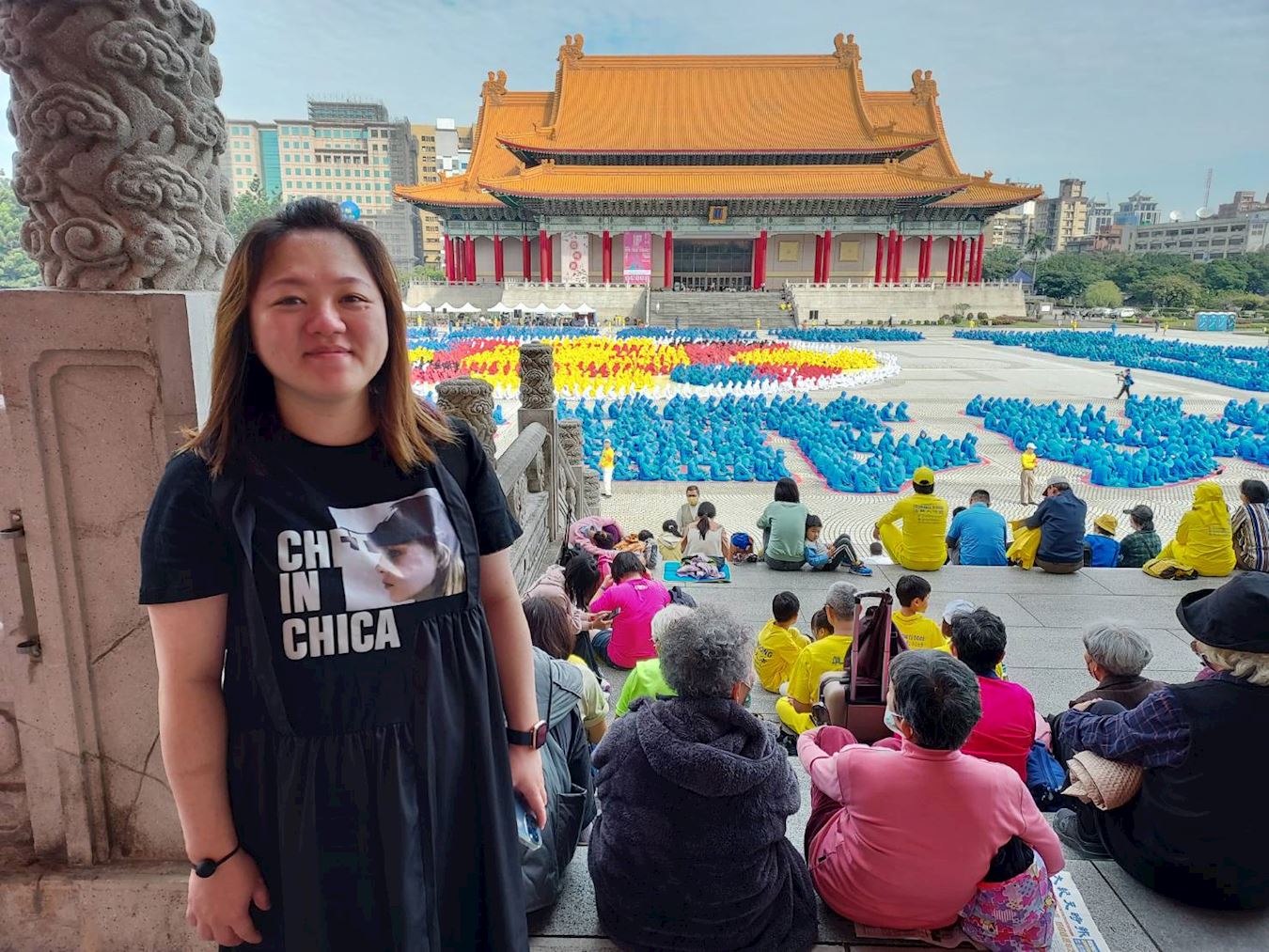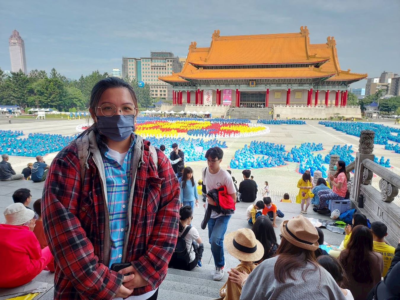 和西里尔一同前来的玛丽莲(Manilyn)在菲律宾的一家国际公司从事销售工作,她接着说:“我们来到这里看到这样的活动,很震撼。”她认为,法轮功学员在台湾这个地标性建筑前举办这样的活动非常好,让很多游客都知道了正在发生的中共迫害法轮功的事情。
